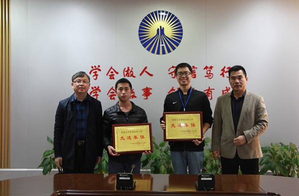 (校领导为pg娱乐官网颁发“先进集体”奖牌)