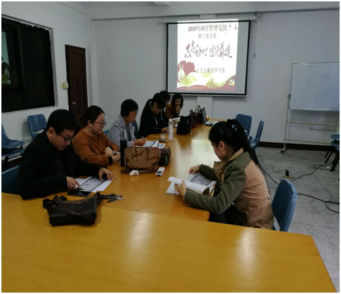 11月27日下午,pg娱乐电子游戏官网入口教工党支部开展支部活动,学习讨论党的十九大报告,会议由党支部书记李征主持。