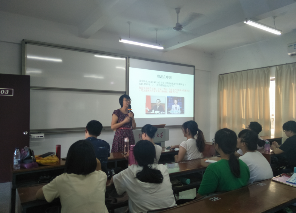 9月13日下午,为了让新生们对物流管理专业有更加深入的了解,物流管理系于第一教学区共和楼203举行了2018级新生专业介绍会。此次介绍会由系主任李征老师担任主讲,同时pg娱乐电子游戏官网入口院长翁景德及该系全体专任教师、辅导员出席大会。
