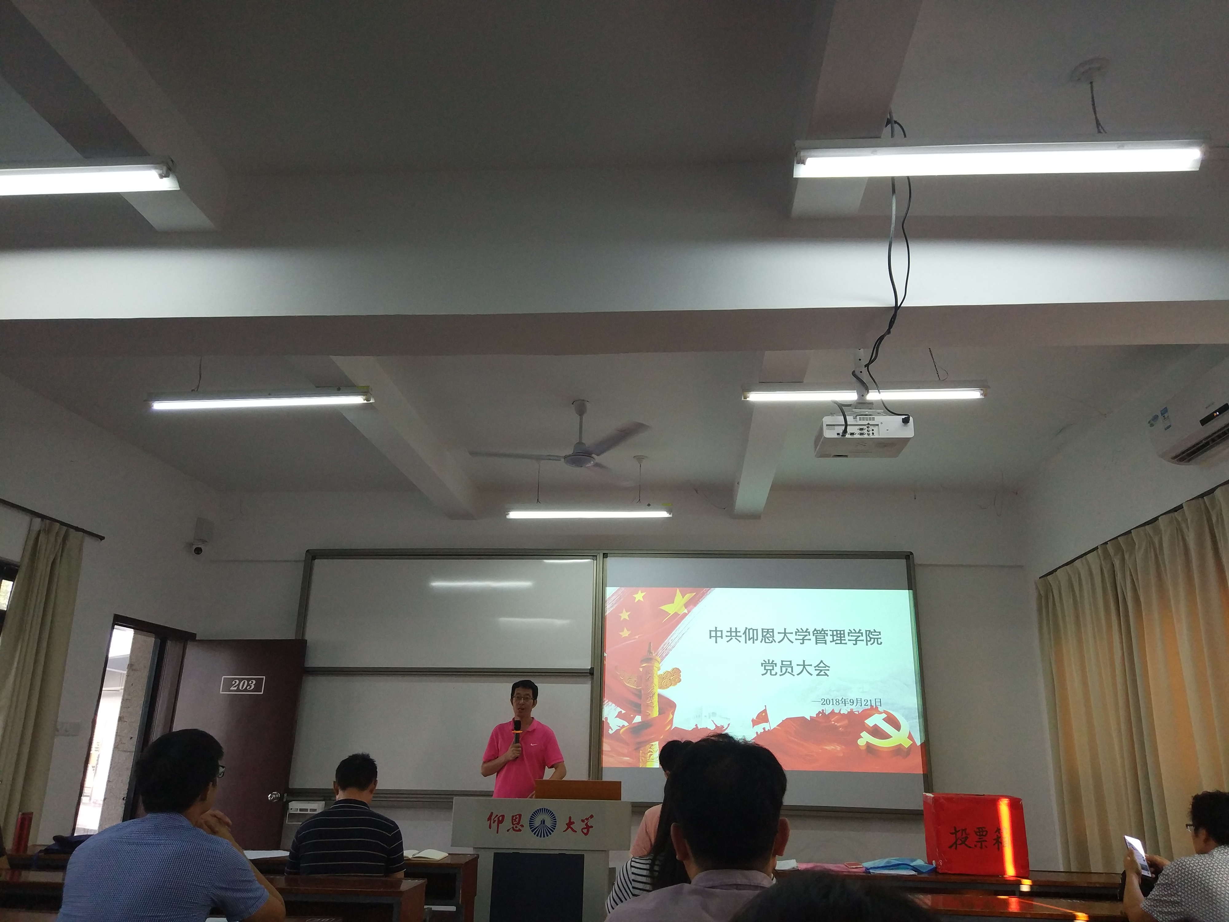 为进一步加强学校基层党组织建设,增强党组织的凝聚力、创造力和战斗力,根据校党委的统一安排部署,pg娱乐电子游戏官网入口党总支于9月21日下午四点半在第一教学区共和教学楼203室召开全体党员大会,进行党总支换届选举工作,会议由上一届党总支组织委员杜结实同志主持。