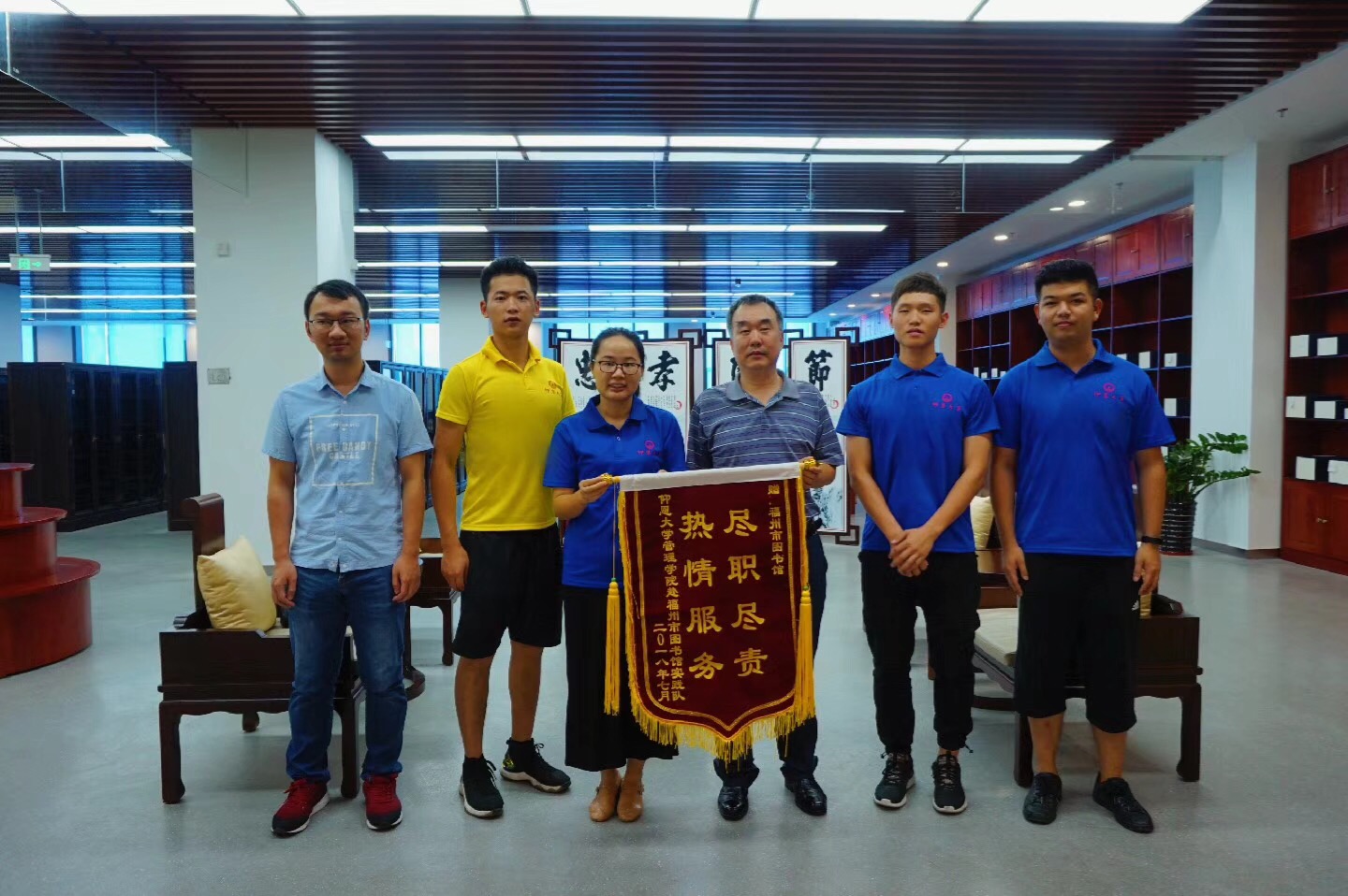 【pg娱乐电子游戏官网入口“社会主义接班人”赴福州市图书馆暑期实践队】实践队向图书馆赠送锦旗