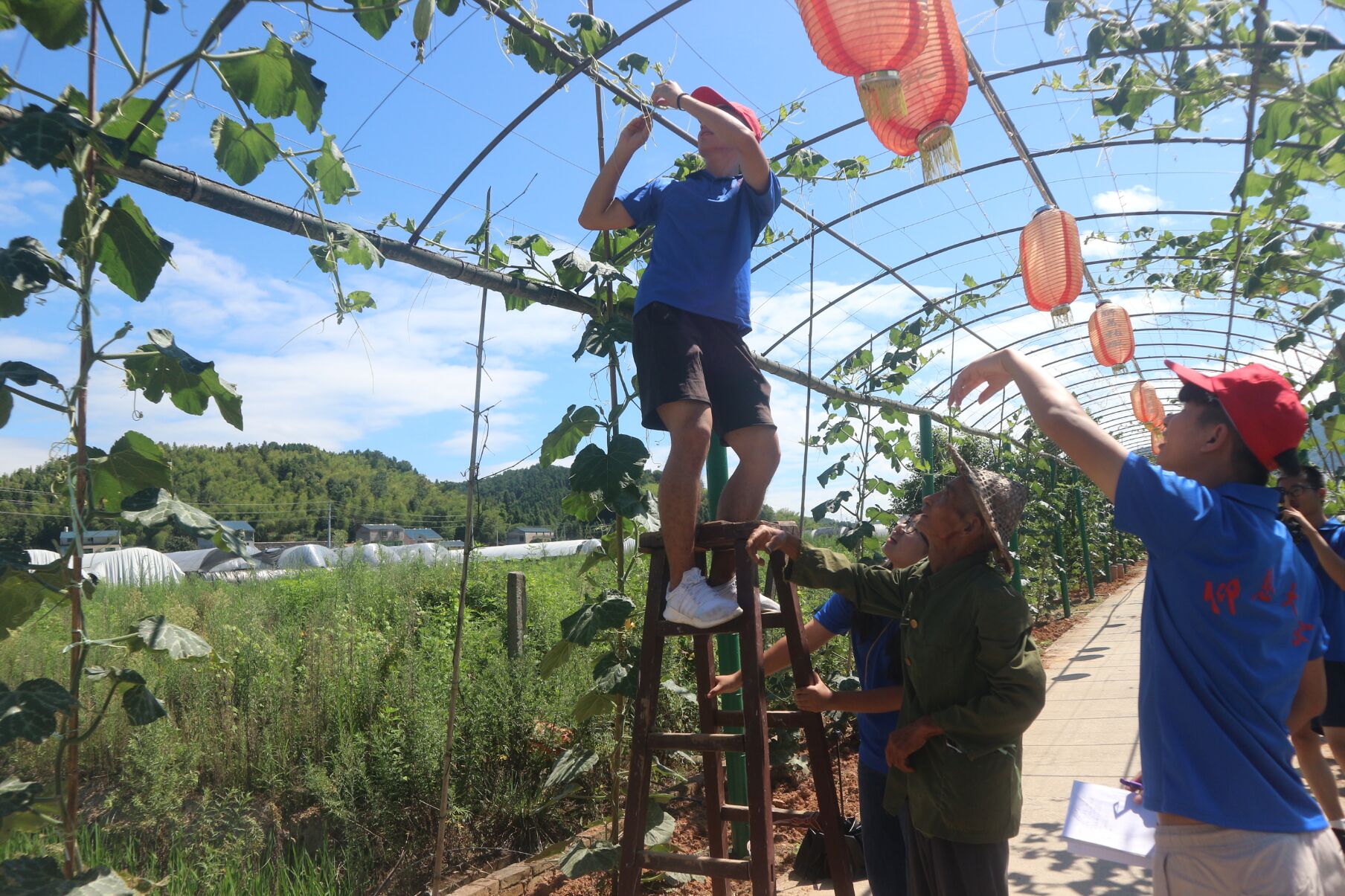【pg娱乐电子游戏官网入口“青溢功成队”赴福建省南平市顺昌县张墩村暑期实践队】队员们同村民一起修建瓜藤