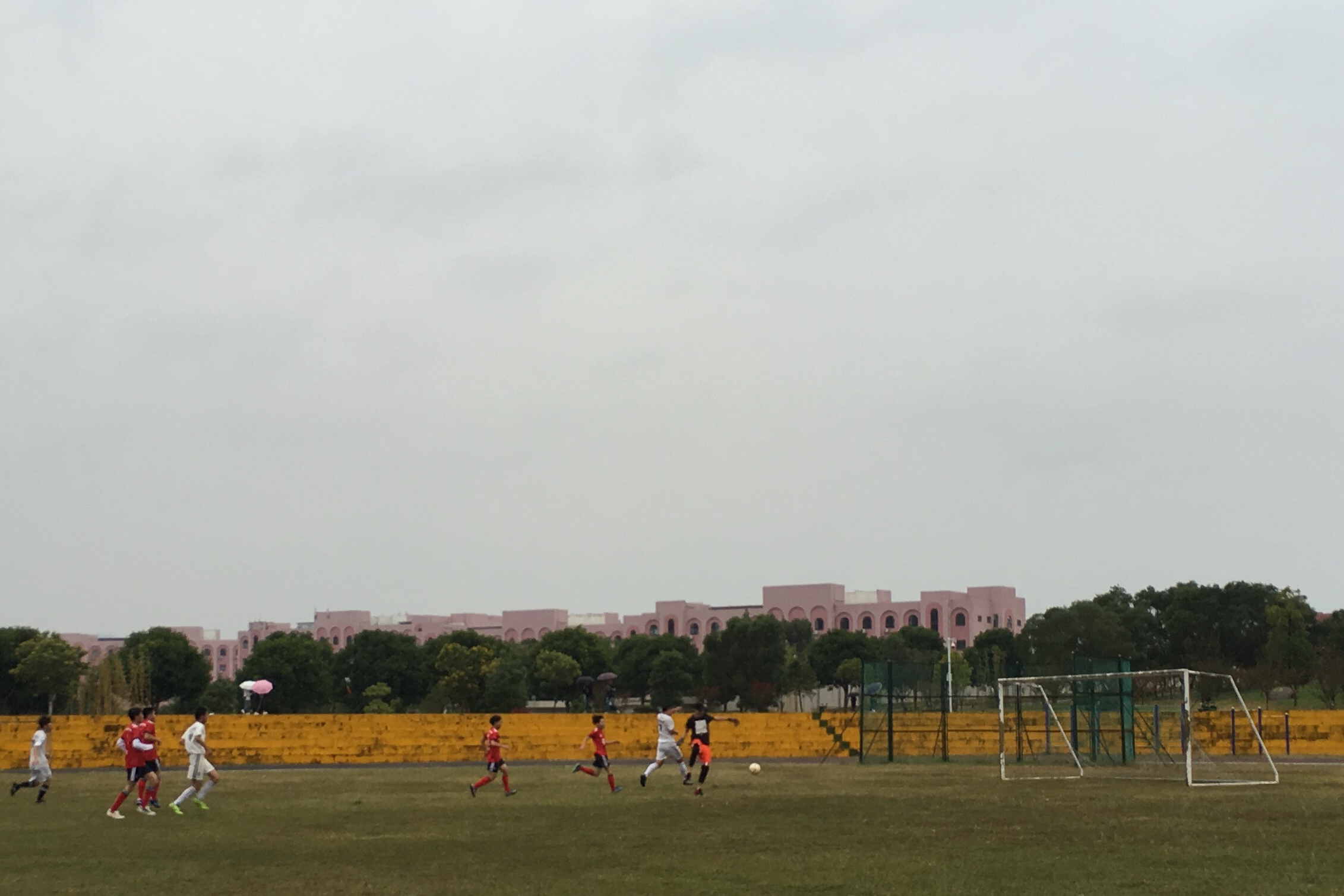 比赛现场 本次比赛由公共管理系对战广告系。公共管理系球员凭借熟练的脚法和默契的配合,多次攻破对方的防线,破门得分。比赛持续了将近一个小时,上半场公共管理系以2:0领先广告系。中场休息过后,双方队长进行人员和战术的调整,比赛进入下半场的激战,公共管理系的队员们越战越勇,数次冲破对方防守,又攻入4球,最终公共管理系以6:1压倒性优势取得本场比赛的胜利,顺利挺入四强。