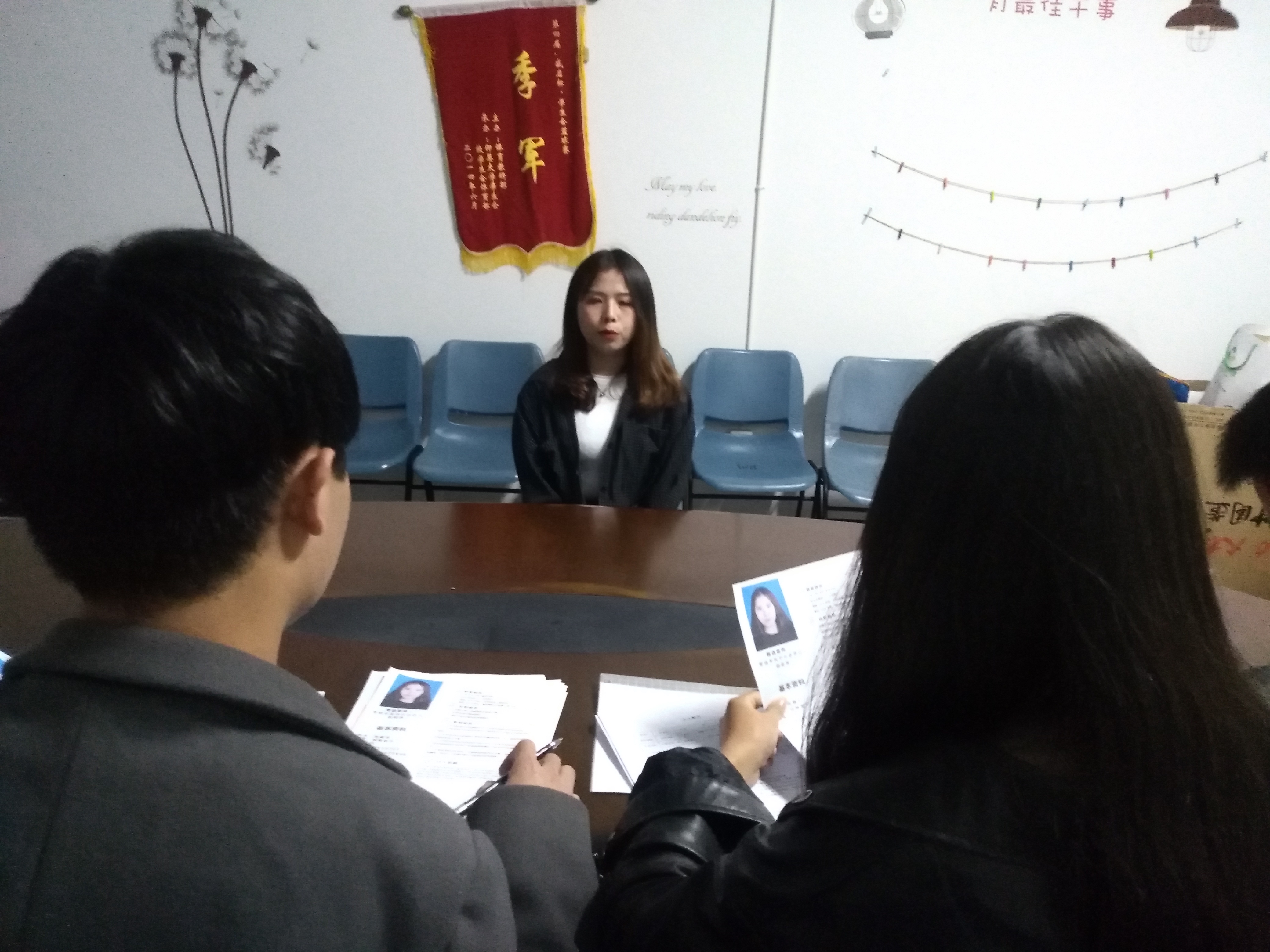 面试进行中 经过两个多小时的选拔,干部换届面试圆满结束,新一届的pg娱乐电子游戏官网入口学生会干部必将牢记“服务师生”的使命,不断提高自己、完善自己。(谢静/文 黄晓珍/图)