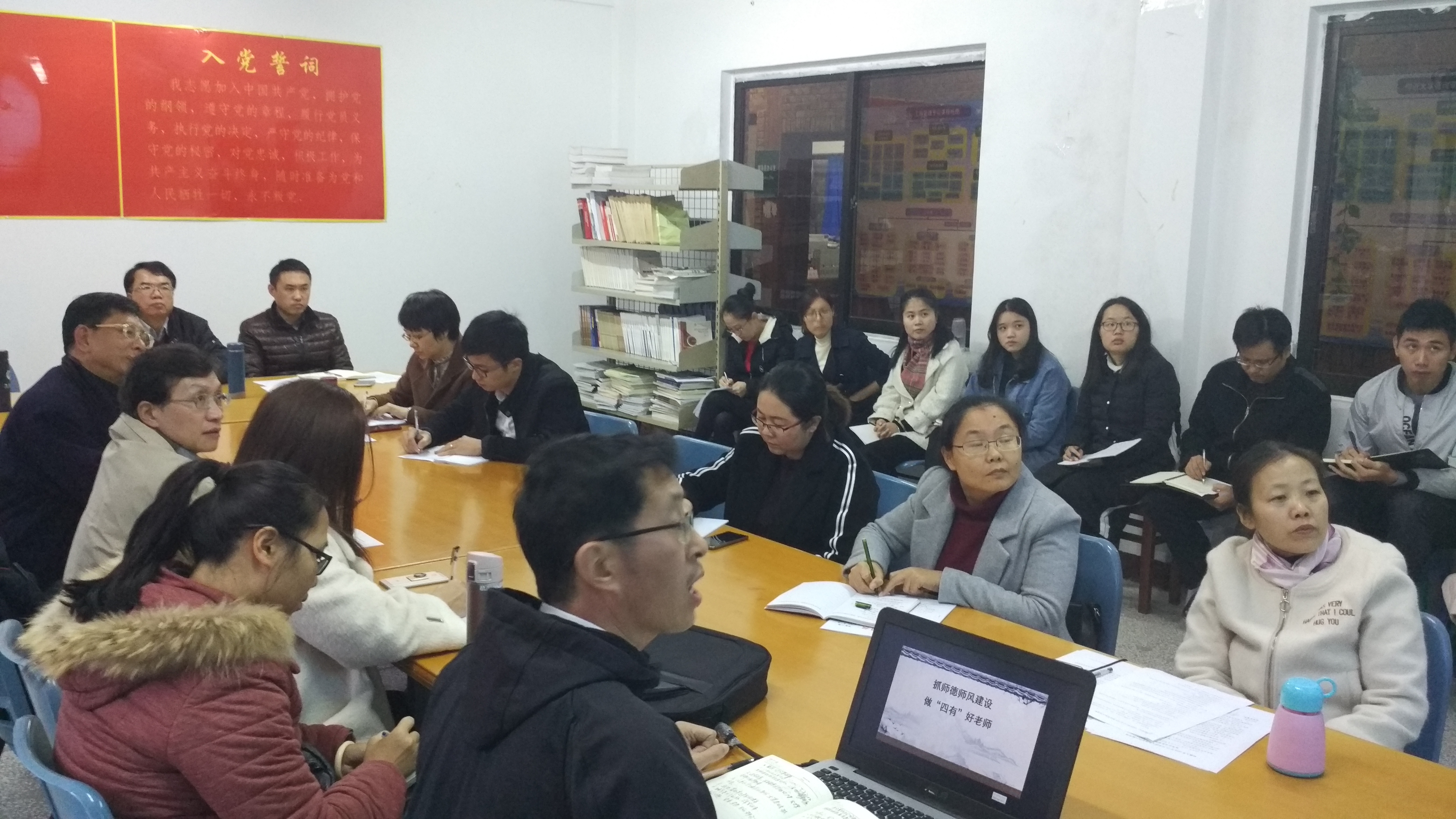 12月13日下午,pg娱乐官网召开全院教职工大会,学习师德师风建设精神暨深入学习贯彻全国教育大会精神。pg娱乐官网党总支书记兼常务副院长许惠铭作《抓师德师风建设,做“四有”好老师》宣讲报告。全体院领导、各系主任、全体专任教师、辅导员和行政秘书参加会议。会议由常务副院长许惠铭主持。