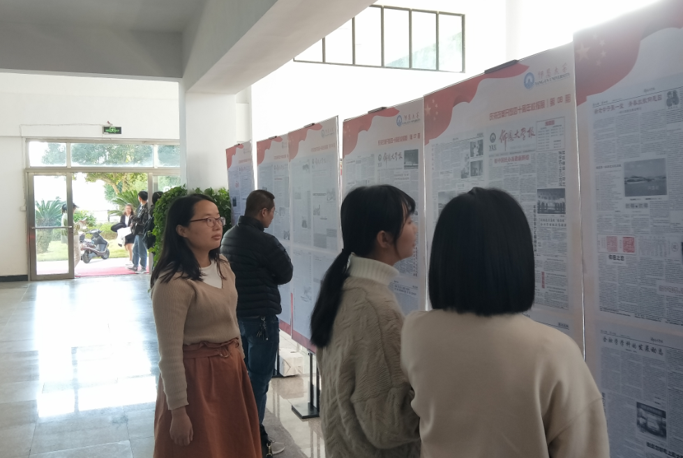 12月19日下午,pg娱乐官网精心组织各基层党支部师生党员前往第三教学区图书馆观看由校党委宣传部举办的“庆祝改革开放四十周年校报展”。