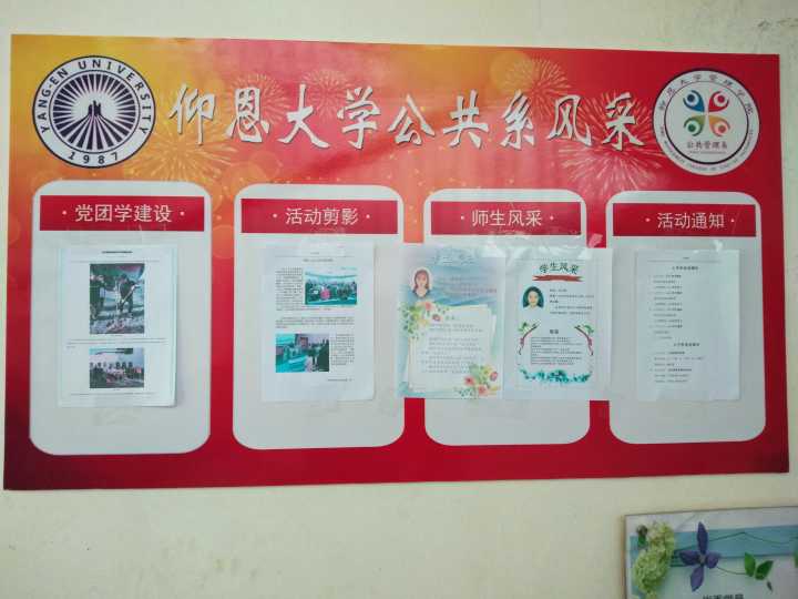 4月4日上午,公共管理系团学成员在第一教学区共和楼楼道上设立风采展示栏,并张贴本系的风采。