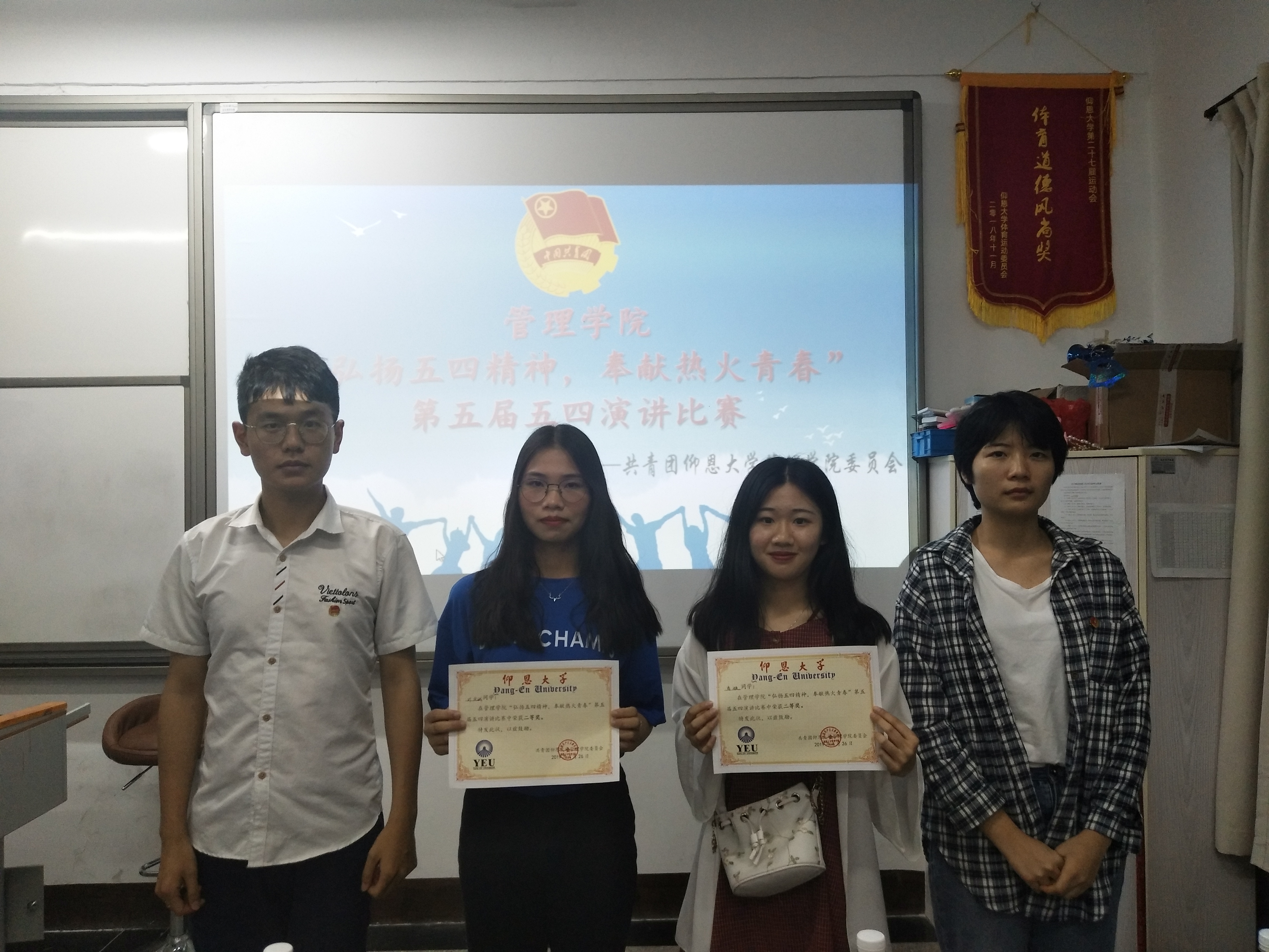 现场颁奖 此次五四演讲比赛达到了纪念五四运动、弘扬爱国精神、负起责任担当、致力实践创新、坚定团员理想信念的目的。最终,孙娟娟、潘璇、叶凤娥、朱雪琪、李昭治、李智梹分别获得一二三等奖,将代表pg娱乐官网参加校决赛!(张绣婷/文 柯怡晴/图 审核:杜心田)