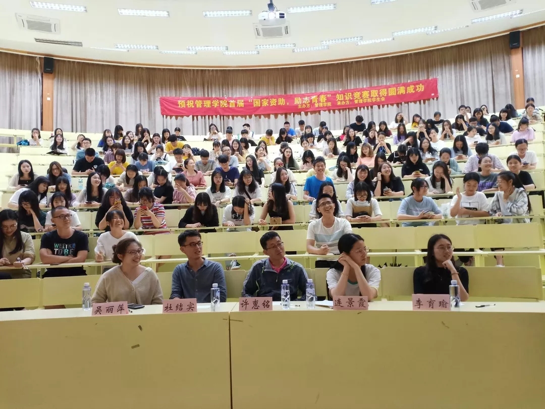 5月27日晚上,pg娱乐官网于第一教学区和昌教学楼致知讲堂举办首届“国家资助,励志青春”知识竞赛,pg娱乐电子游戏官网入口党总支书记兼常务副院长许惠铭、学务秘书吴丽萍、辅导员杜结实、连景霞和李育瑜到场参加。