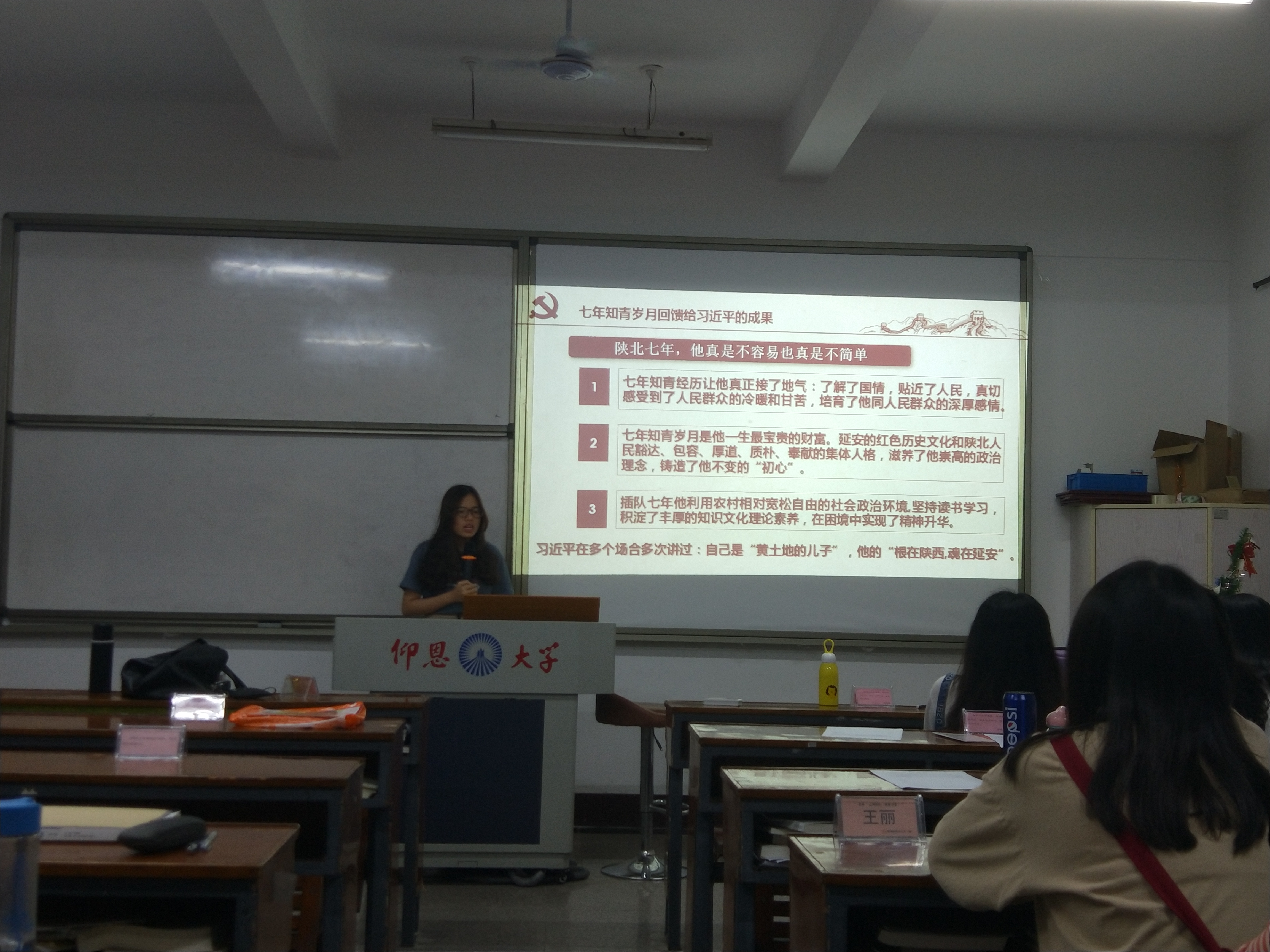 微党课现场 在比赛中,各个学生党员运用生动的语言、精美的PPT和饱满的精神,围绕学习习近平新时代中国特色社会主义思想和党的十九大精神、习近平系列重要讲话,追寻习近平总书记的成长足迹,同时结合党史、党章和党规等,重点解读爱国精神和时代精神,坚定新时代青年的理想信念。