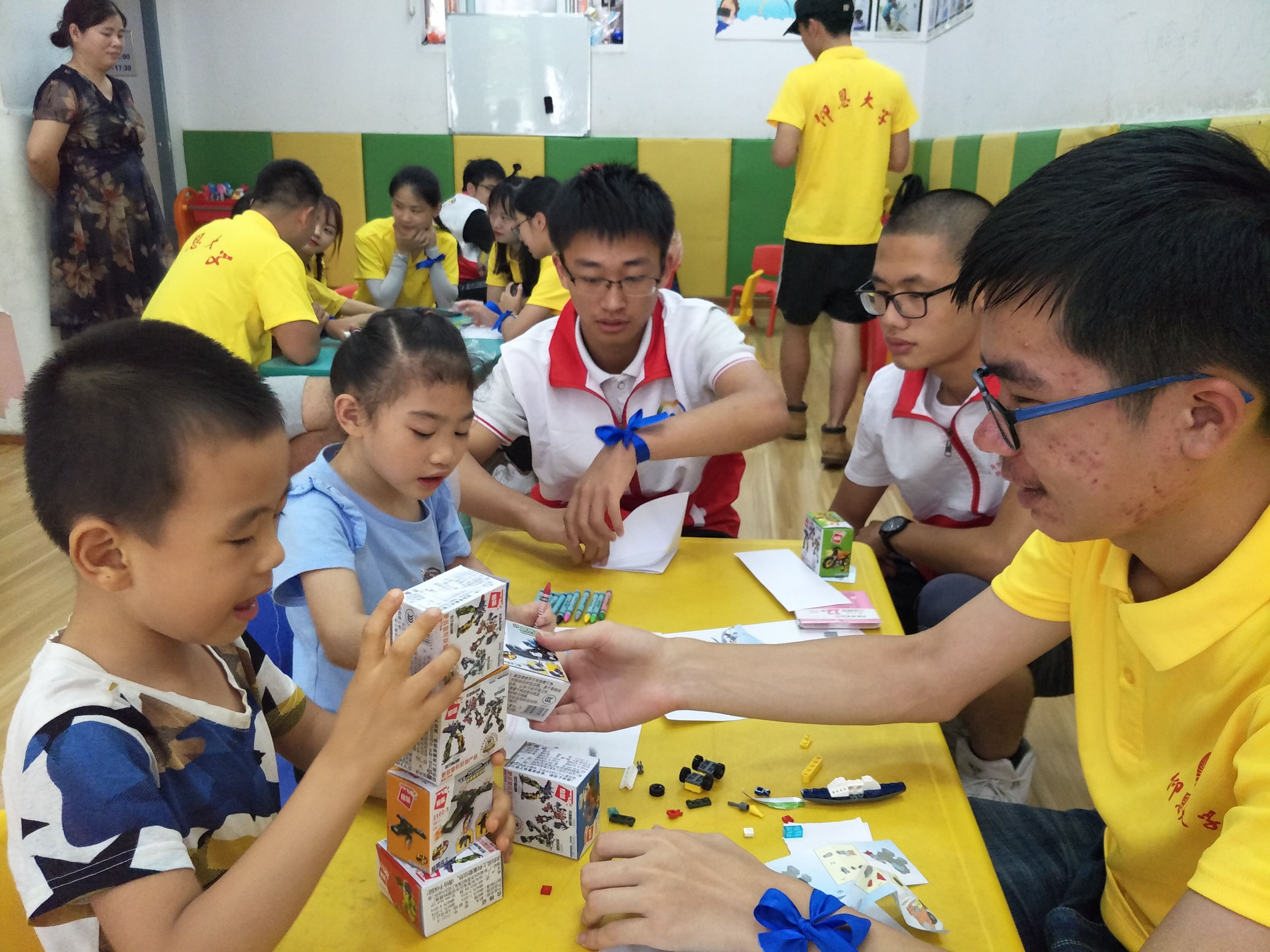 在负责人的介绍下,实践队队员们与云霄彩虹公益联合会的志愿者了解了何为自闭症、自闭症的引起原因及治疗方法。为了拉近与孩子们的距离,消除陌生,队员们手把手教小朋友绘画,陪小朋友一起拼益智玩具。