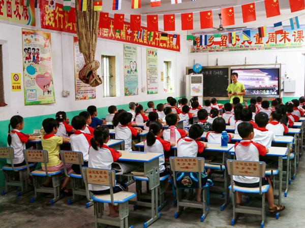 实践队员为“洋留守儿童”开展爱国主义教育活动