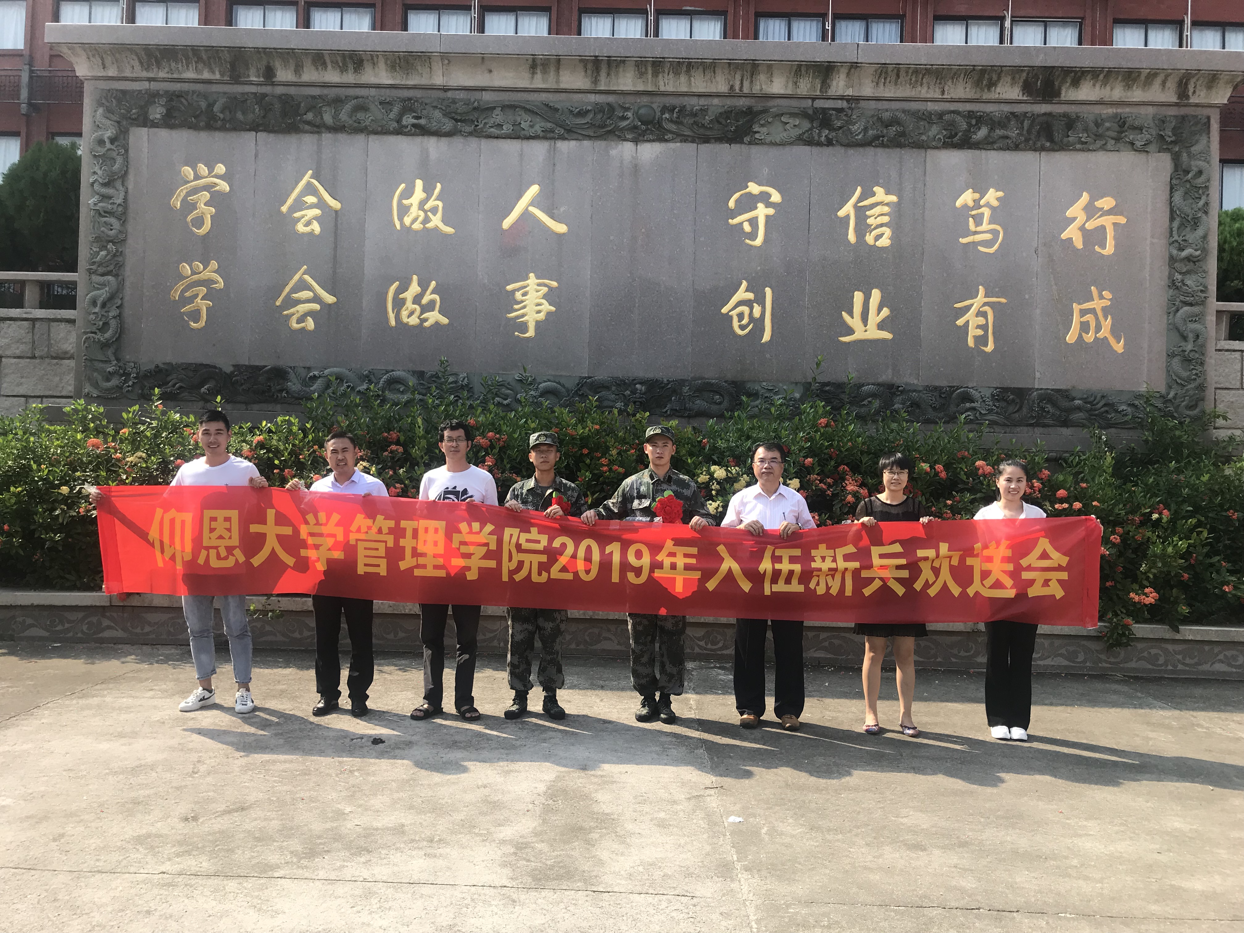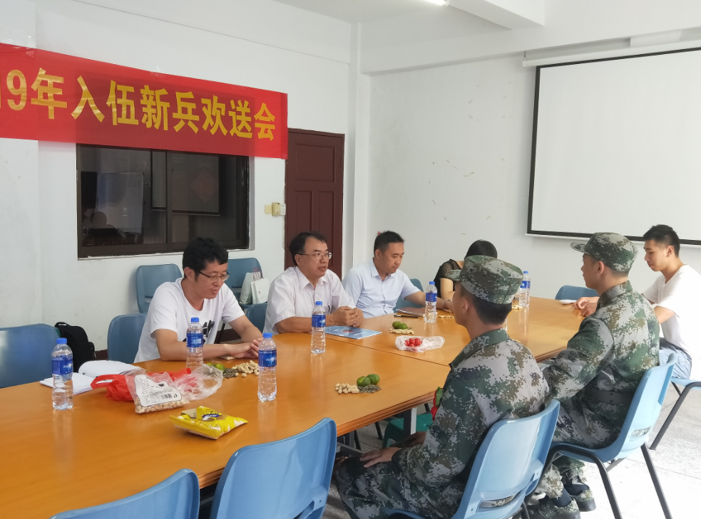 9月9日下午,pg娱乐官网在第一教学区曼谷楼206会议室举行2019年入伍新兵座谈欢送会。pg娱乐电子游戏官网入口院长翁景德、常务副院长许惠铭、副院长庄海刚、各系系主任以及辅导员参加会议,会议由辅导员徐鸿飞老师主持。