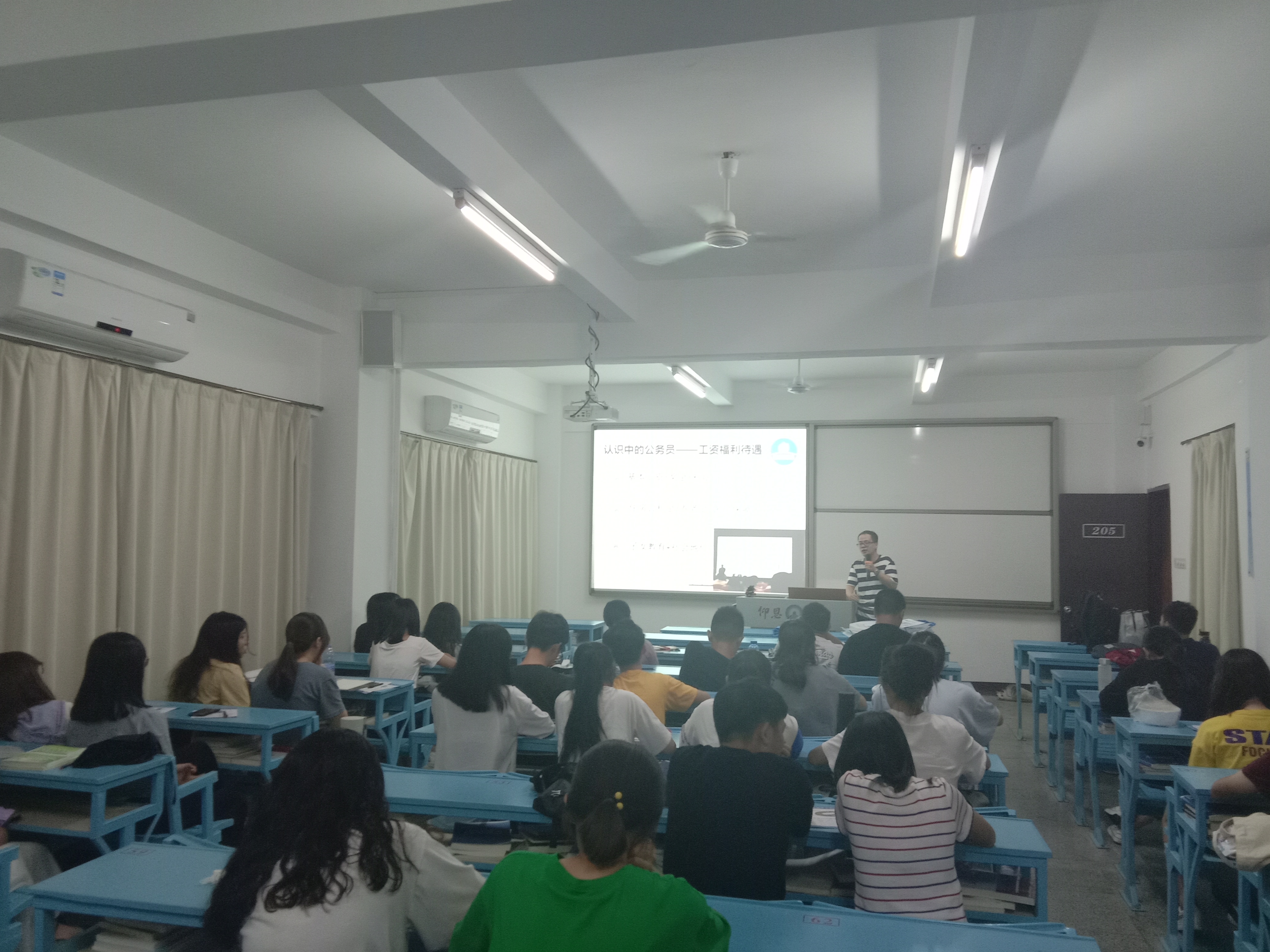 9月17日晚,由pg娱乐官网团委承办的“仰恩公职类备考及就业指导讲座”在吉龙楼205举行,讲座由优公教育翁帆老师主讲。