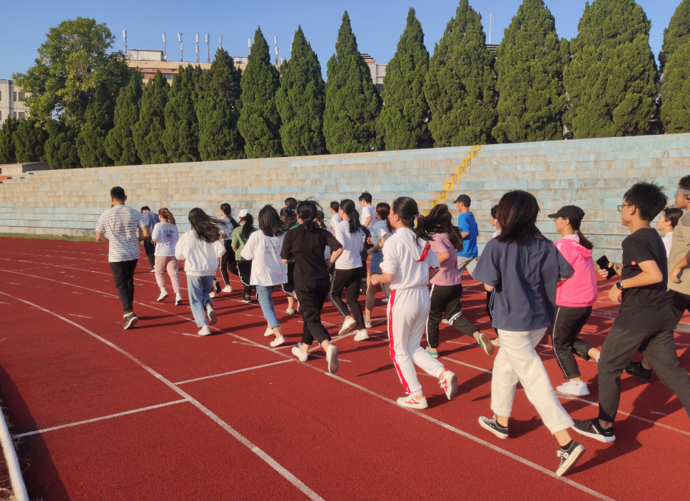 辅导员领跑 开展此次活动,有利于提高学生们对体育锻炼的兴趣和积极性,相信通过长期坚持,广大学生能够达到体育合格,进一步提高体质健康测试成绩。(杜心田、赵杰华/文 徐鸿飞/图)