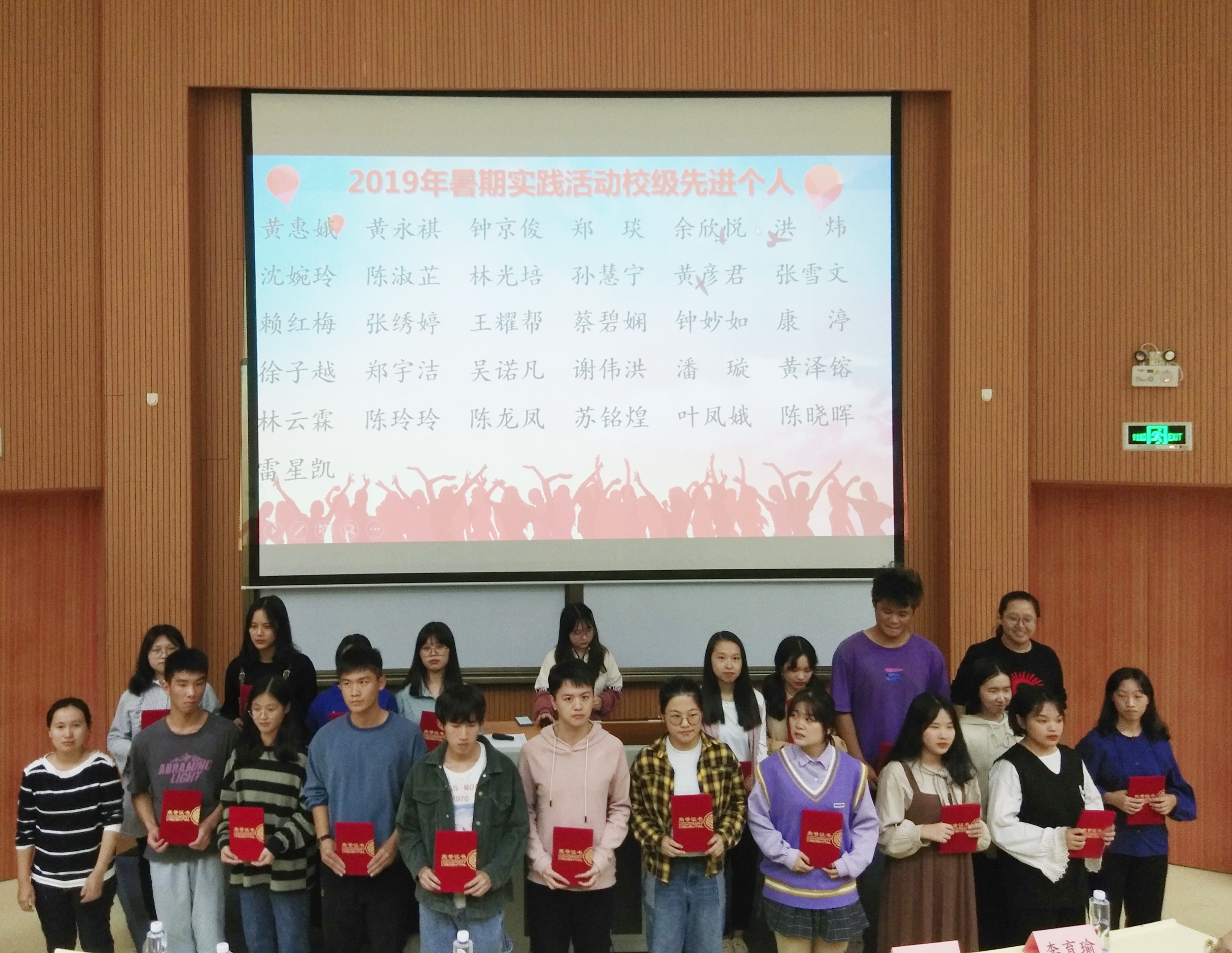 10月31日晚,pg娱乐官网2019年暑期实践活动表彰大会(暨pg娱乐电子游戏官网入口第一届课堂笔记大赛学院复赛表彰大会和2019-2020学年第一期班级黑板报——庆祝新中国成立70周年专题评比表彰大会)在第一教学区和昌教学楼致知讲堂举行。pg娱乐电子游戏官网入口院长翁景德、副院长庄海刚、pg娱乐电子游戏官网入口党总支副书记蔡惠丽、院团委书记杜结实、各系团总支书记出席表彰大会,各实践队指导老师、获奖学生代表以及2019级全体大一新生参加表彰大会。