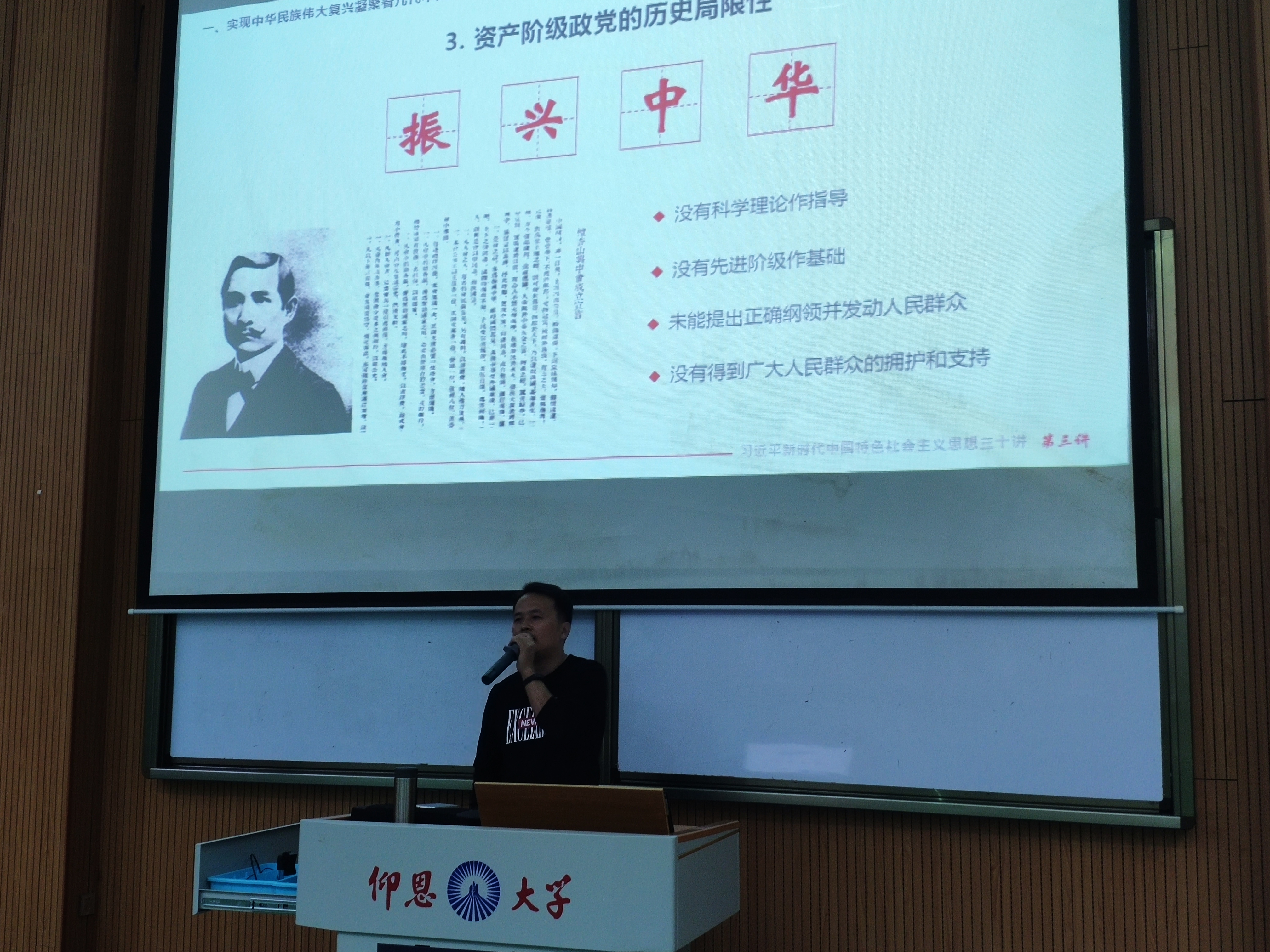 11月7日下午,pg娱乐电子游戏官网入口在第一教学区和昌教学楼乐之讲堂开展“新思想”理论宣讲活动,校党委理论宣讲团成员、马克思主义学院教师唐锦锋应邀为学院师生作《实现中华民族伟大复兴是近代以来中华民族最伟大的梦想》主题宣讲报告。