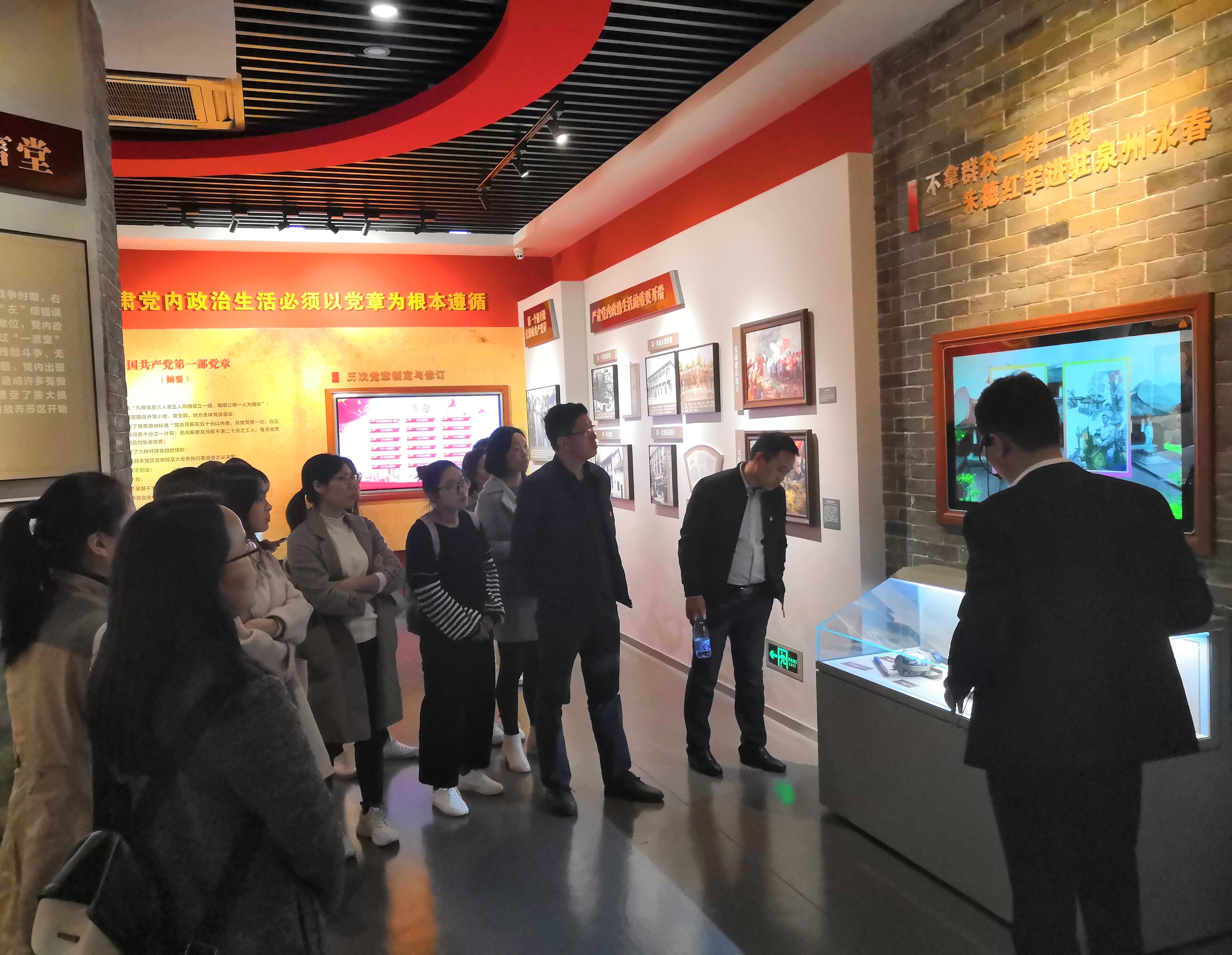 为推进“不忘初心、牢记使命”主题教育走深走实,12月4日下午,pg娱乐电子游戏官网入口教工党支部在学院党总支书记、常务副院长许惠铭的带领下,组织支部教师党员及部分学生党员前往泉州市党内政治生活体验馆开展“不忘初心、砥砺前行”主题党日活动。
