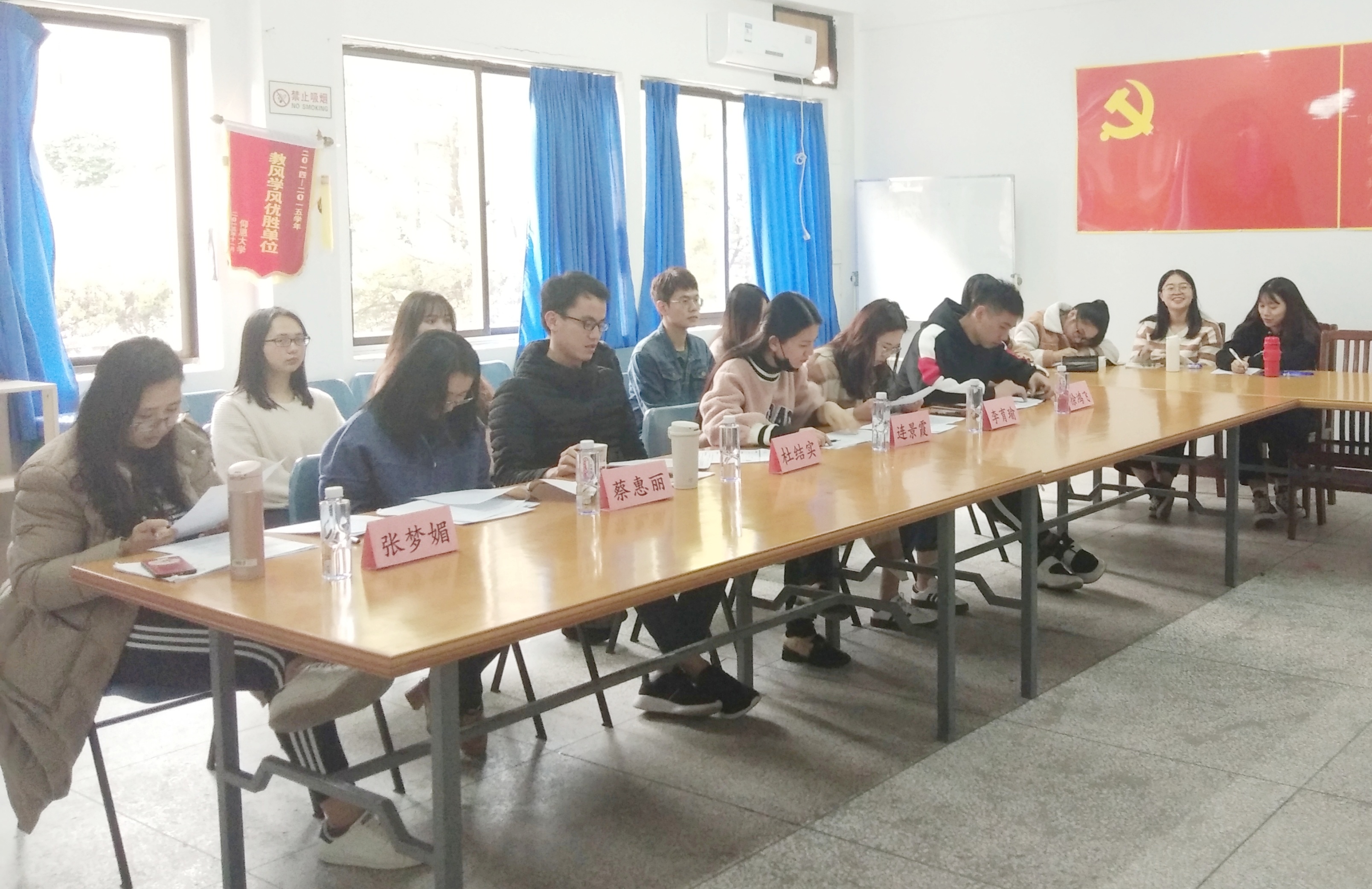 12月23日下午,pg娱乐官网于曼谷楼206举行一院四系团委(团总支)学生副书记、学生会主席团选拔面试。各系辅导员担任学生干部换届选拔面试的评委,校团委委派相关工作人员进行监督,保证面试的公平、公正、公开。