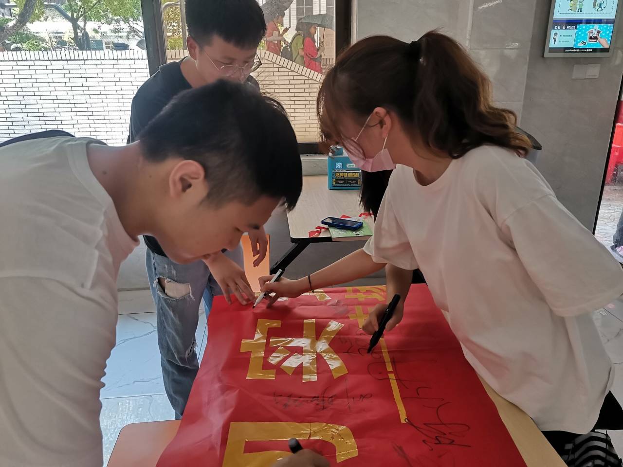 签名 活动开始,同志们向往来食堂吃饭的行人介绍习近平总书记关于制止餐饮浪费行为、切实培养节约习惯的倡导,带动他们参与其中,并签字以示大学生践行勤俭节约、光盘行动的决心,同学们纷纷表示杜绝节约不能只是说说而已。同时,党支部的同志们更以身作则将光盘行动落到实处。