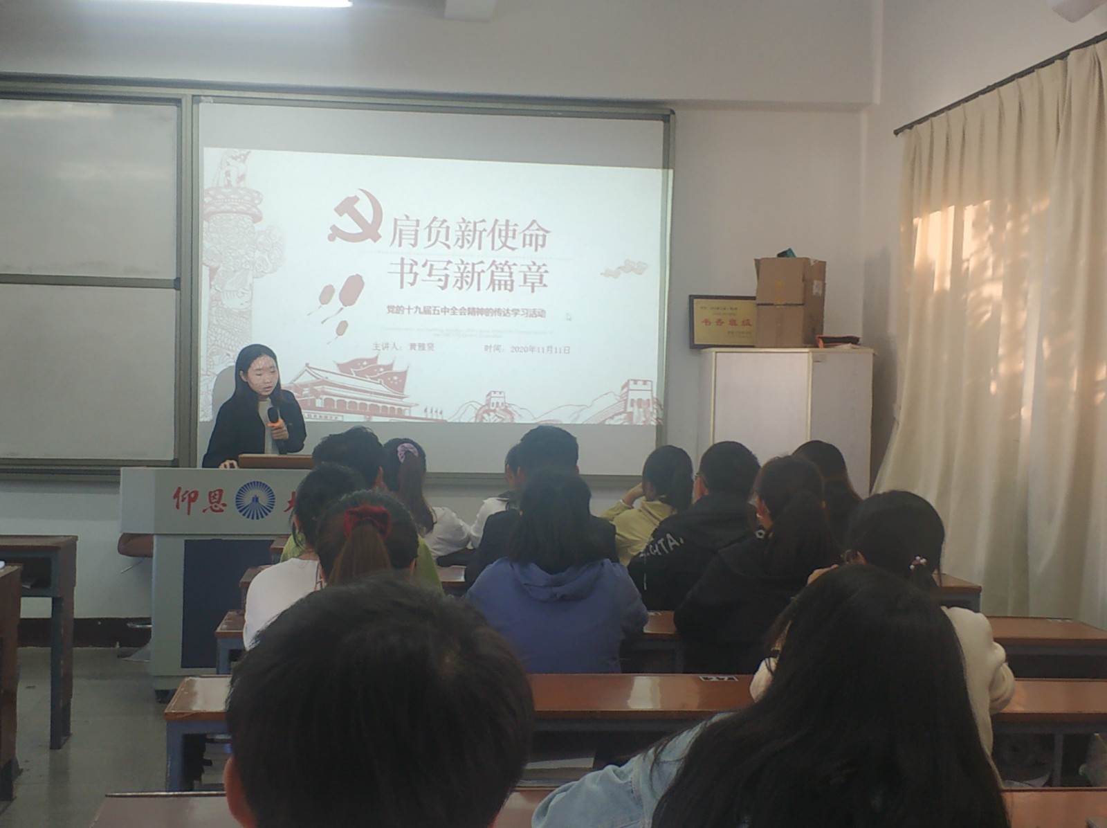 为了深入学习全会精神,培养支部成员的爱国情怀、社会责任感和使命感。11月11日下午三点,公共管理系学生党支部在共和楼312举办以“肩负新使命,书写新篇章”为主题的十九届五中全会精神的传达学习党日活动。
