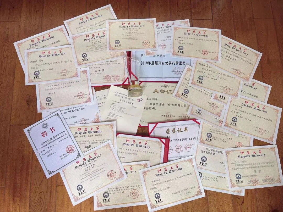 3. 2020年5月 荣获福建省“优秀共青团员”荣誉称号