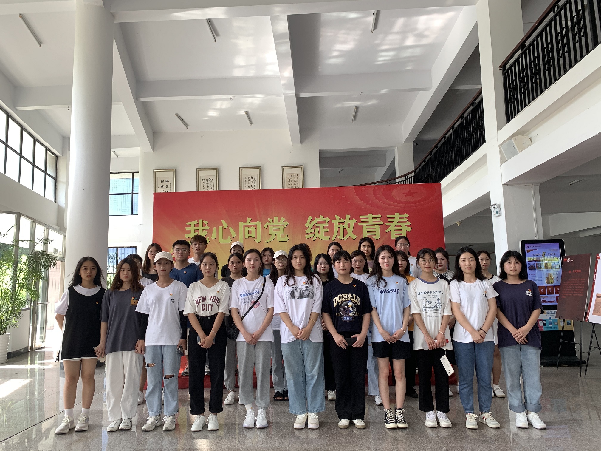 大合照 通过观看中国共产党建设初期时的图片,回顾百年前定格的历史瞬间,重温了五四爱国运动爆发、“南陈北李”相约建党、开天辟地召开一大、嘉兴南湖红船起航等系列重要历史事件,深切感受到了早期共产党人在筹备建党过程中历经的艰辛和磨难,对建党历史的过程有了更全面深入的了解,更加深刻体会到早期共产党人在争取民族独立和人民解放征程中的斗争精神和大无畏精神。