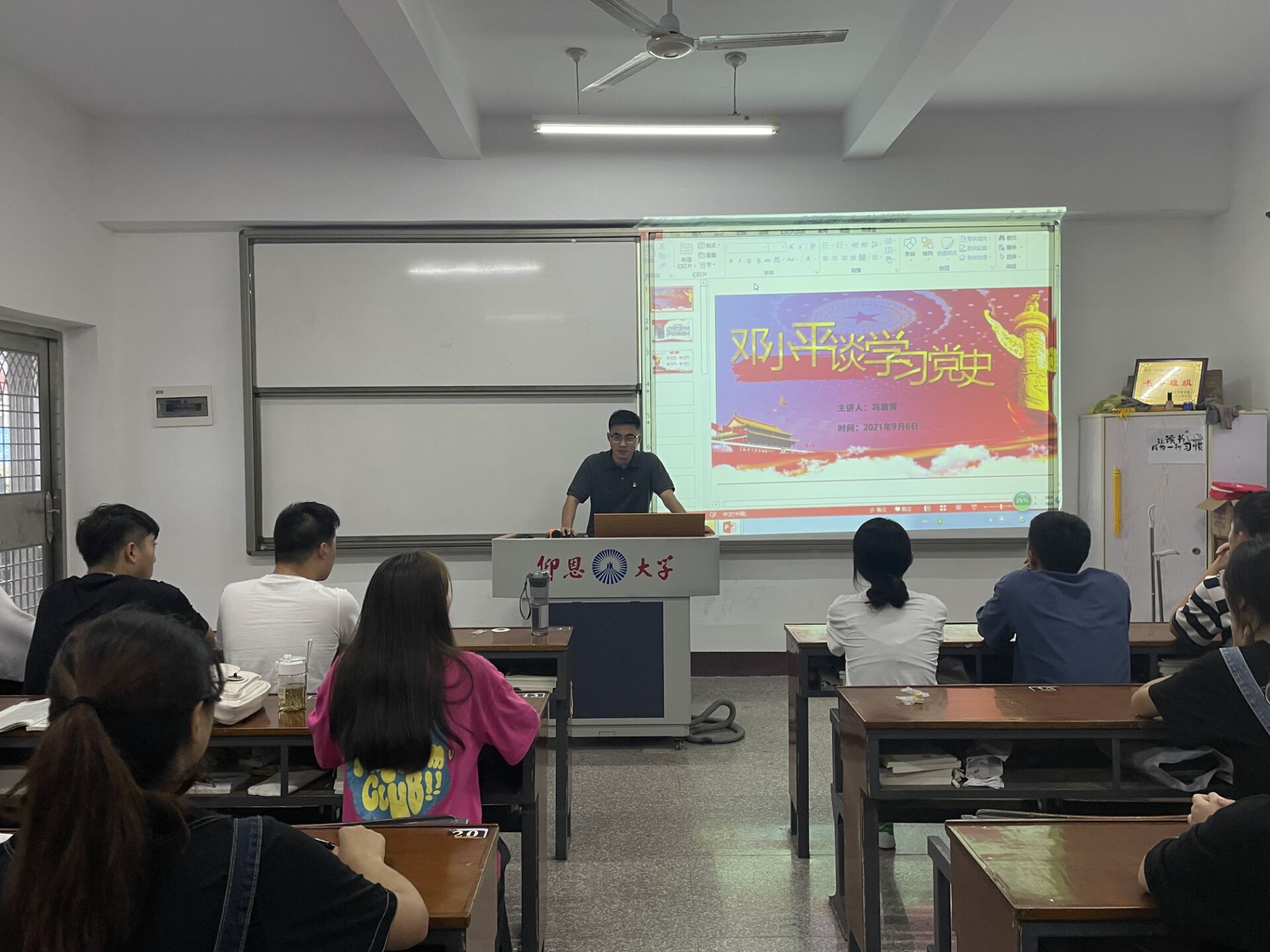 为深入学习宣传贯彻习近平总书记“七一”重要讲话精神,工商管理系学生党支部于09月06日下午在pg娱乐电子游戏官网入口第一教学区共和楼213,支部书记冯瀚霄以“邓小平谈学习党史”为主题,讲授了一堂主题鲜明、深刻生动的党史学习教育专题党课。