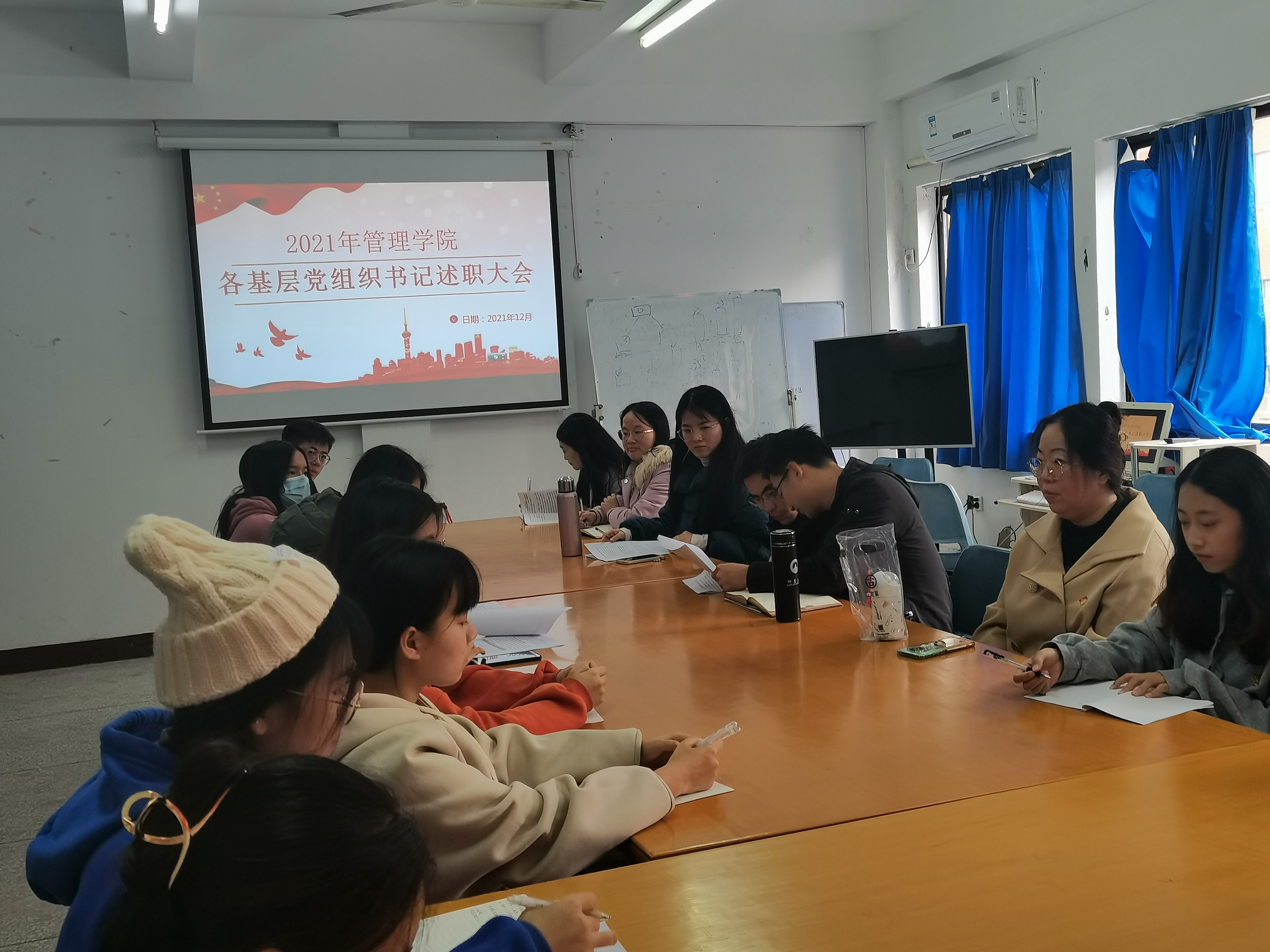 12月22日下午,pg娱乐电子游戏官网入口于曼谷楼206召开2021年度pg娱乐电子游戏官网入口各基层党组织书记述职大会,本次大会由pg娱乐电子游戏官网入口党总支书记许惠铭老师主持,pg娱乐电子游戏官网入口副院长庄海刚老师、党总支副书记陈绍炯老师及各支部书记、教工和支委代表参加本次会议。