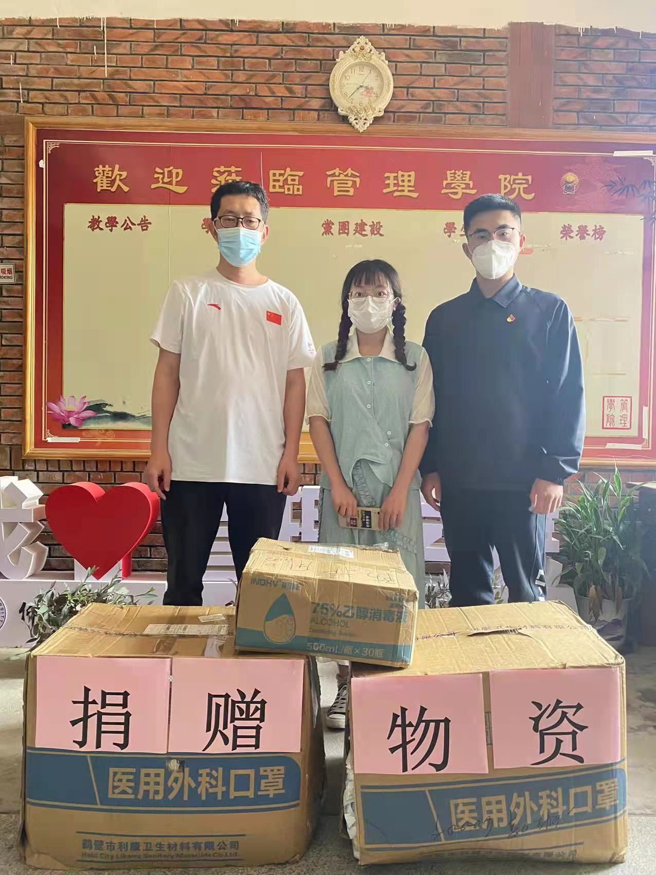 4月11日上午,pg娱乐电子游戏官网入口工商管理系2019级杨珊茹同学助力学院疫情防控,为学院捐赠防疫物资。学院党支部书记兼常务副院长许惠铭、辅导员冯翰霄、相关单位负责任人接受了捐赠,并对杨珊茹同学的捐赠行为表示感谢和赞扬。