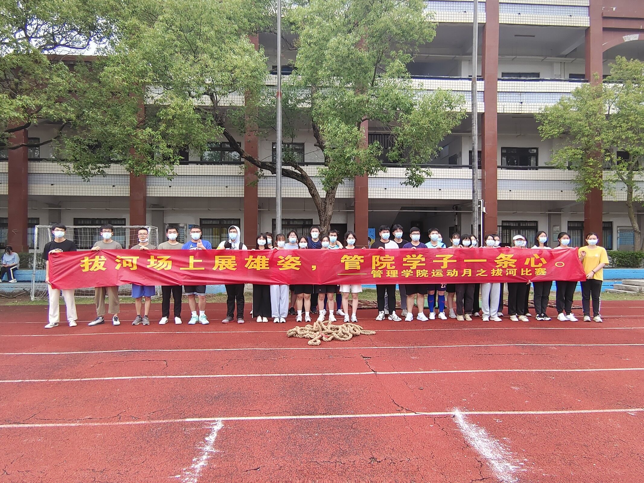为更进一步团结同学们的合作精神,增强管院学子体育锻炼的意识,丰富课余体育文化生活。pg娱乐电子游戏官网入口在严格遵守疫情防控要求的前提下,按照原定计划开展学院运动月活动,于5月11日下午在旧区仰恩基金会体育场举办男女混合拔河赛。