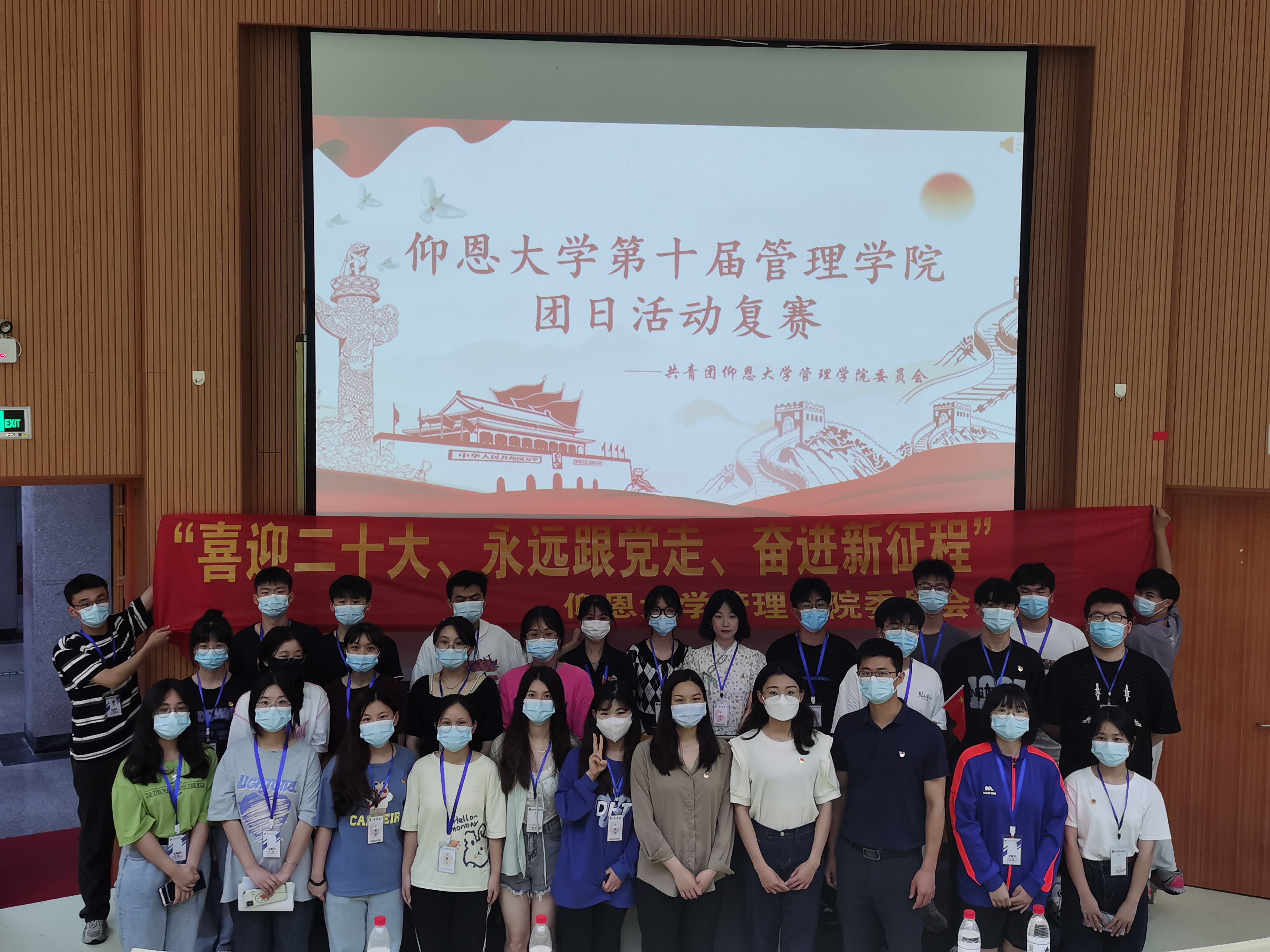 全体合照 此次团日活动大赛旨在引领广大青年团员不忘初心、牢记使命,坚定不移听党话、跟党走。锻炼了同学们的设计和演讲能力,增强了管院青年的历史责任感与使命感,更加坚定了青年学生立志高远、拼搏奋斗的理想信念。号召管院青年把青春融入时代、矢志奋斗,以优异的青春业绩迎接党的二十大顺利召开。
