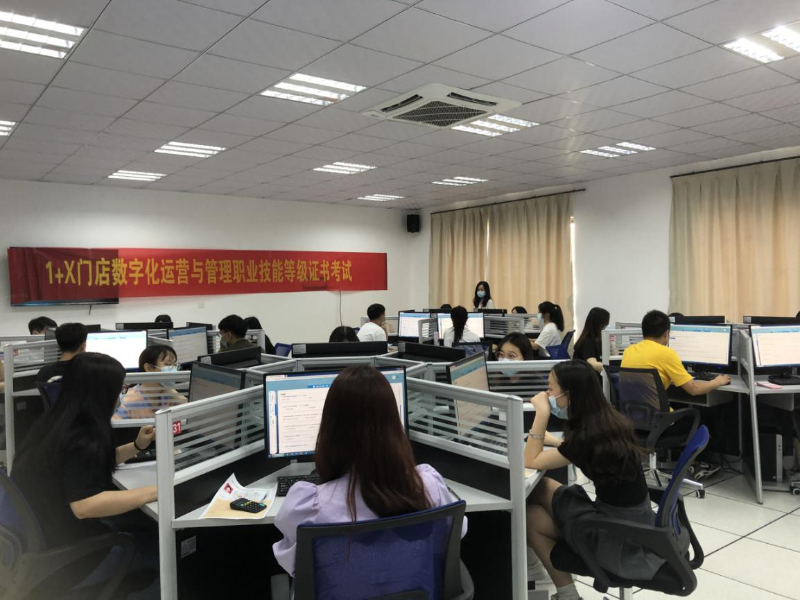 为了贯彻落实教育部关于“学历证书+若干职业技能等级证书”制度试点(以下称“1+X”证书制度试点),6月1日,1+X门店数字化运营与管理职业技能等级证书考试在我校举行。工商管理专业共50名学生参加了本次考试。