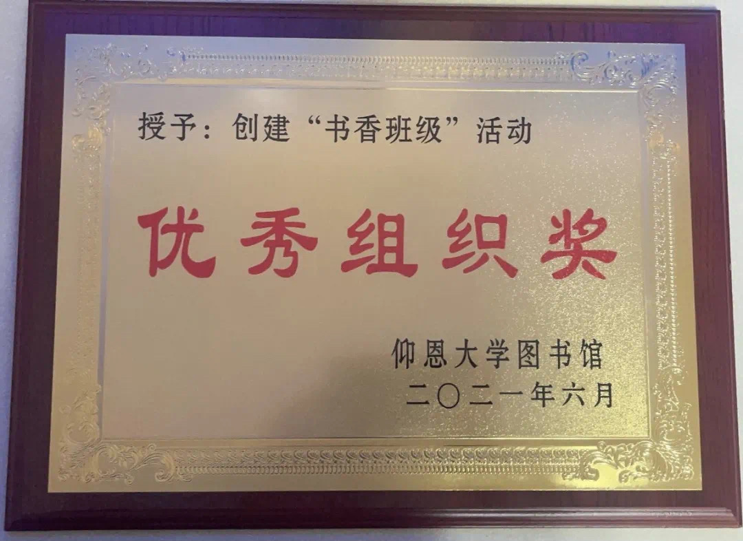 pg娱乐电子游戏官网入口荣获2020-2021学年“书香班级”活动优秀组织奖