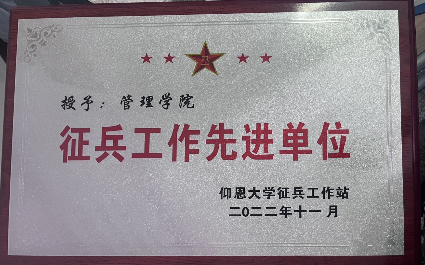 pg娱乐电子游戏官网入口获征兵先进工作单位 在过去的一年里,学院致力于加强学生对征兵政策的解读,激发学生的参军热情,号召学生“携兵从戎,逐梦青春”,切实担当政治责任。