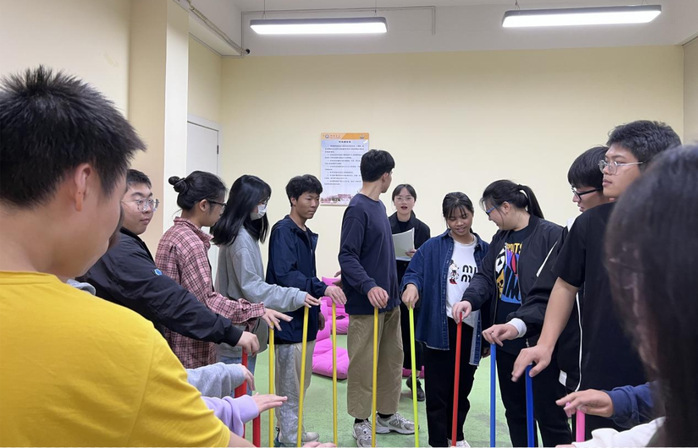 心理委员们体验“不倒森林”活动