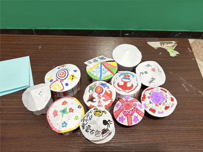 在课堂上,队员们首先通过PPT和播放视频的形式向孩子们详细介绍了蒙古族的发展史和民族特色文化。接着开展了蒙古包手工制作活动,在制作蒙古包的过程中,孩子们充分发挥了自己的想象力和创造力,创造出了一个个充满童心色彩的蒙古包。