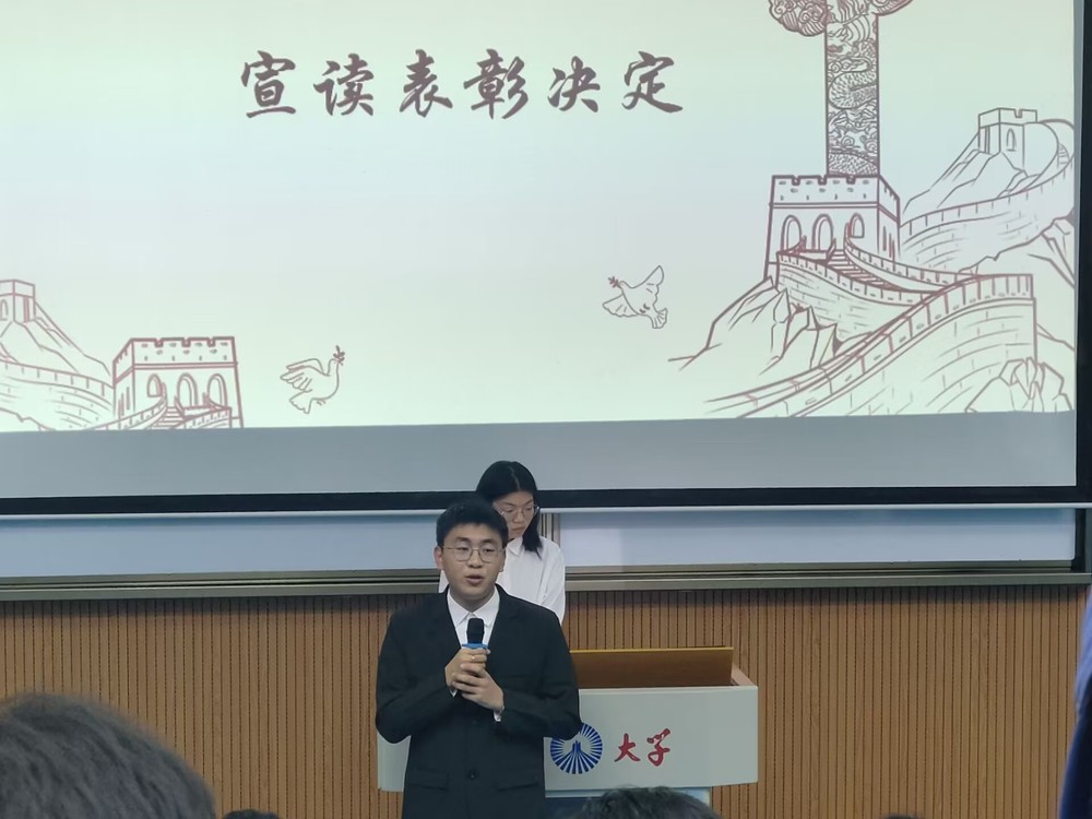 表彰伊始,由工商系团总支代表邓宁榕同学宣读表彰决定,他总结了这一阶段以来工商系在各方面取得的优异成绩,汇报了工商系团学的工作成效,并表明在接下来的阶段里再接再厉,再创辉煌。随后,老师们依次为先进集体和先进个人进行颁奖,奖学金获得者代表程晶晶同学、优秀干部代表李淑熔同学、三好学生代表黄雯烯同学分别上台发言,分享了他们在学习和工作上的一些体验与感悟,并鼓励在场的同学们德业齐并进,努力学习,勇敢探索。