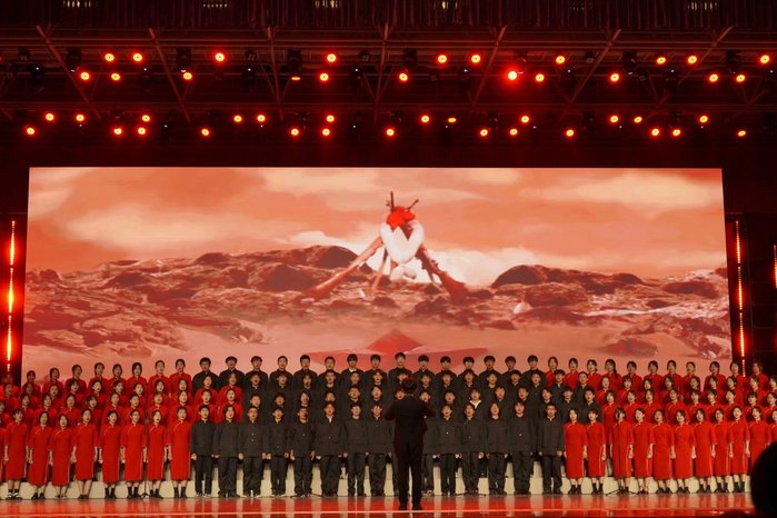 同学们用歌声带领着观众们一同穿越到战争年代,弥漫的硝烟见证着革命先烈的英勇无畏,大家共同感受着红色精神,重温红色记忆。同学们的合唱深切展现了为人民勇于牺牲一切、乐于奉献自己的太行精神,还原出一幅幅强烈震撼的太行军民浴血奋战、共同抗日的恢弘历史画卷。