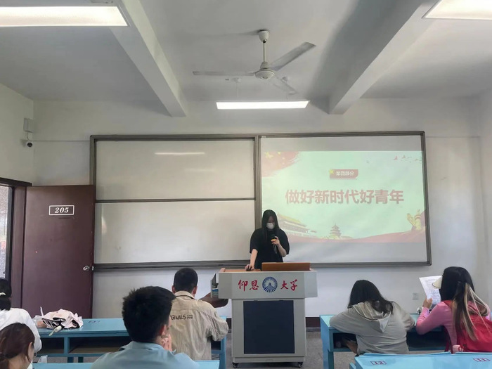 会议伊始,黄萍娥同志以PPT的形式向同学们讲述了爱国主义是指个人或集体对祖国的一种积极和支持的态度,揭示了个人对祖国的依存关系,是人们对自己家园以及民族和文化的归属感、认同感、尊严感与荣誉感的统一。集中表现为民族自尊心和民族自信心,为保卫祖国和争取祖国的独立富强而献身的奋斗精神。不仅体现在政治、法律、道德、艺术、宗教等各种意识形态和整个上层建筑之中,而且渗透到社会生活各个方面,成为影响民族和国家命运的重要因素。