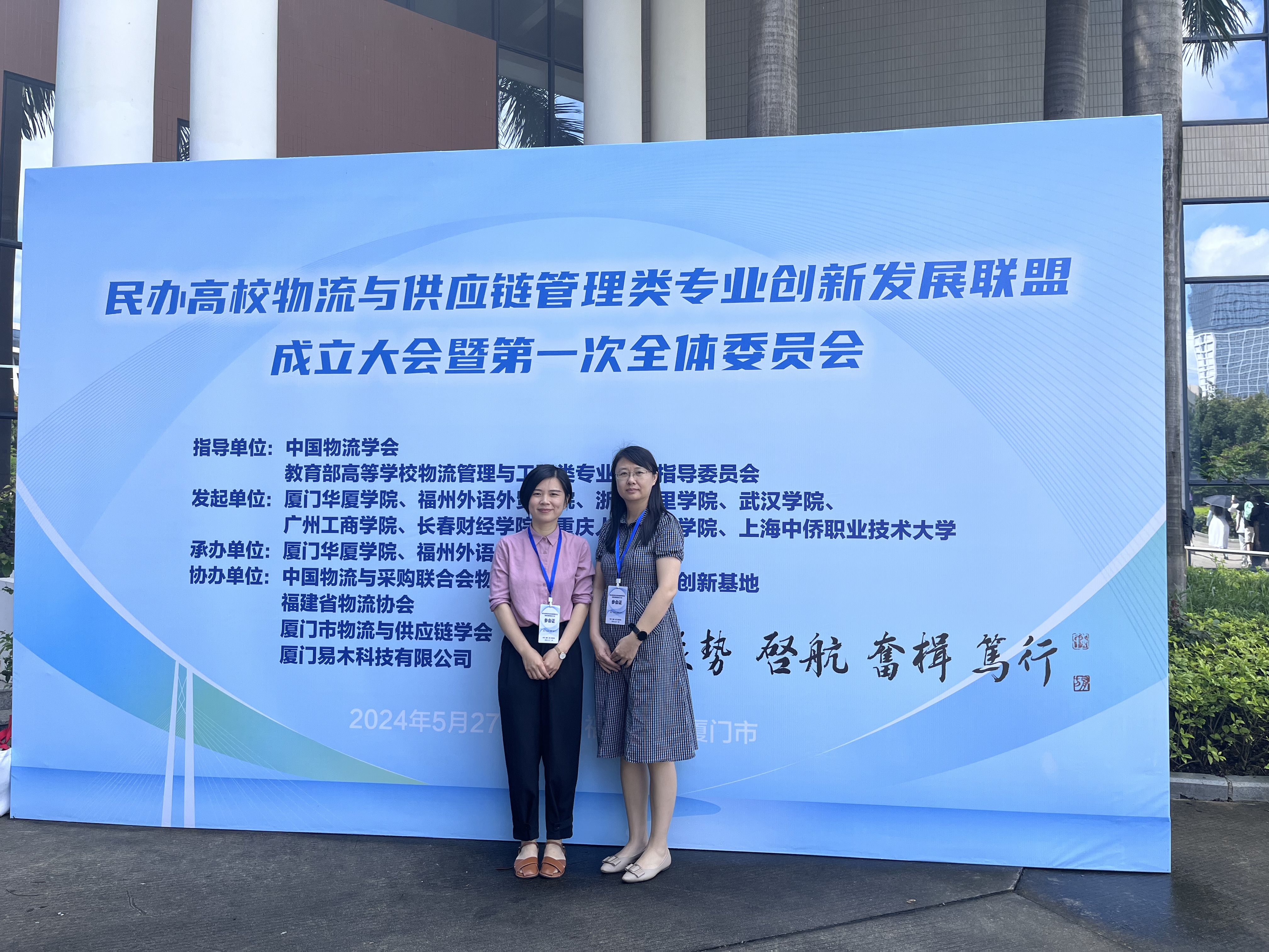 5月27-28日,全国民办高校物流与供应链管理类专业创新发展联盟成立大会暨第一次全体委员会在厦门华厦学院召开,物流管理系系主任李征和专任教师李淑娟应邀参会。pg娱乐电子游戏官网入口作为委员单位加入“全国民办高校物流与供应链管理类专业创新发展联盟”,系主任李征老师被聘为“全国民办高校物流与供应链管理类专业创新发展联盟”第一届委员。