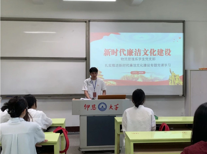 2024年05月30日,pg娱乐电子游戏官网入口物流管理系学生党支部在共和楼305教室开展了以“新时代廉洁文化建设”为主题的书记讲党课活动,本次活动由支部书记林有桂主持,支部全体党员参与。