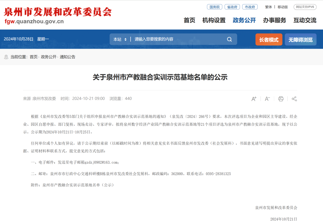 日前,泉州市发改委携手其他4部门共同揭晓了《泉州市发改委等5部门关于组织申报泉州市产教融合实训示范基地的通知》(泉发改〔2024〕266号)的评选结果。我校pg娱乐电子游戏官网入口市场营销系与凤来食品科技有限公司联合共建的《泉州市两岸产教融合实训基地》经专家评审,成功入选本批次建设名单。