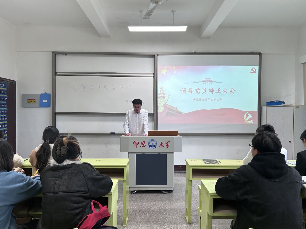 2024年12月23日下午16时,物流管理系学生党支部于共和楼303召开预备党员转正大会,本次会议由支部书记林有桂老师主持,会议庄重而热烈,支部全体党员积极参与,共同见证这一重要时刻。