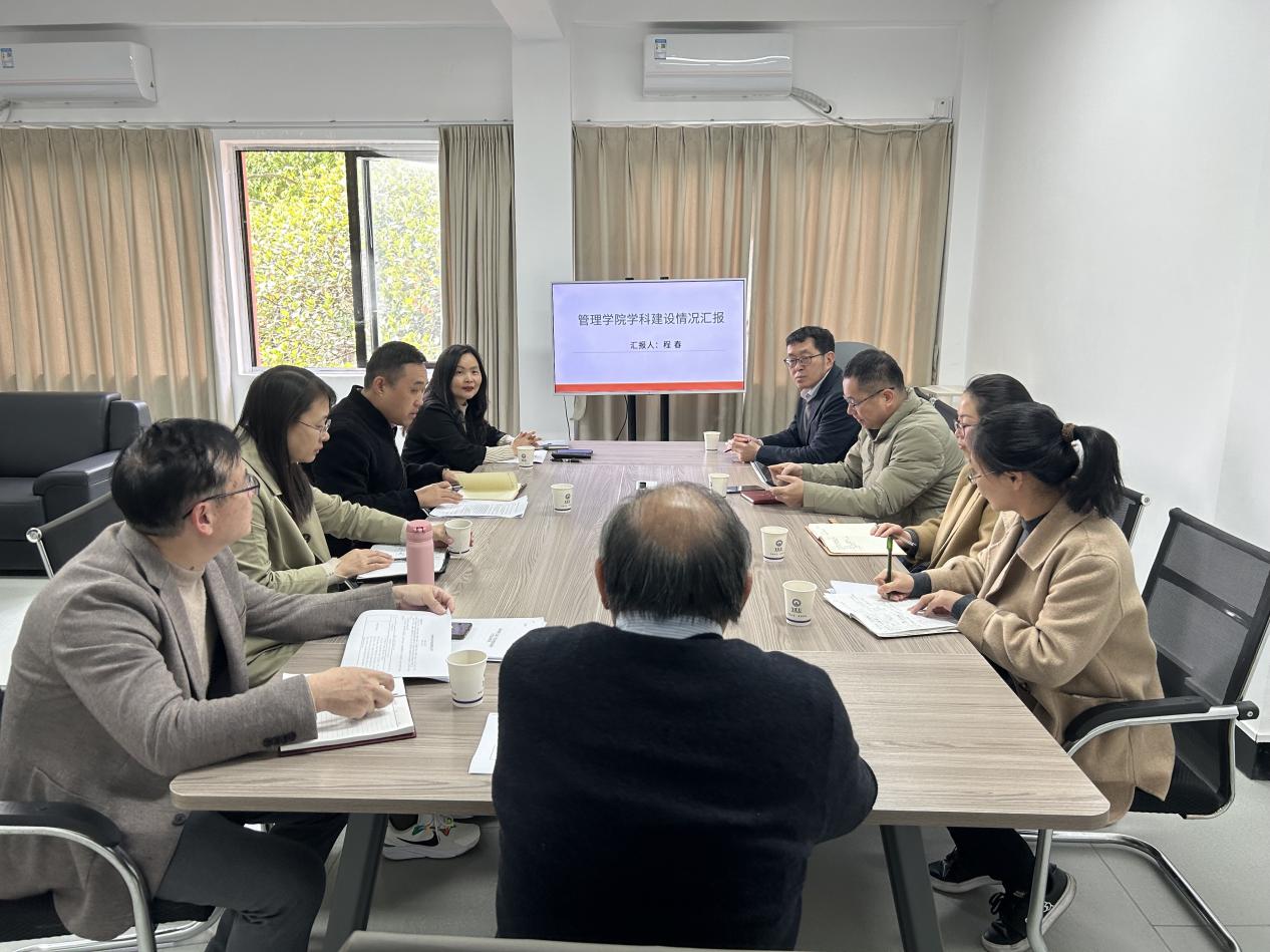 程春副院长从学科基本情况、学科研究方向、学科队伍建设、存在问题及改进思路四个方面进行系统汇报。当前学院在学科建设中聚焦区域产业需求,服务地方经济发展,形成“数智化管理与效能优化”、“品牌运营与管理”、“人力资源创新管理”及“中小企业投融资”四大特色研究方向。在学科队伍建设方面,学院通过内培外引,构建由学科带头人、学术骨干和后备梯队组成的多层次人才体系,并通过传帮带、业务培训、经验交流等方式,提升学科团队的科研能力,近年来在各研究方向上取得系列研究成果。针对学科建设中存在的高层次科研成果数量不足、学科交叉融合平台待完善、青年教师科研能力需提升等问题,提出“强特色、补短板、促融合”发展思路。