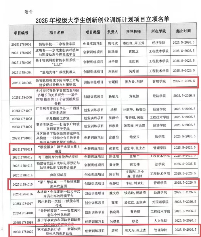 近日,根据《关于公布2025年校级大学生创新创业训练计划项目立项名单的通知》(仰大教〔2025〕21号),pg娱乐官网共立项大学生创新创业训练计划项目8项。