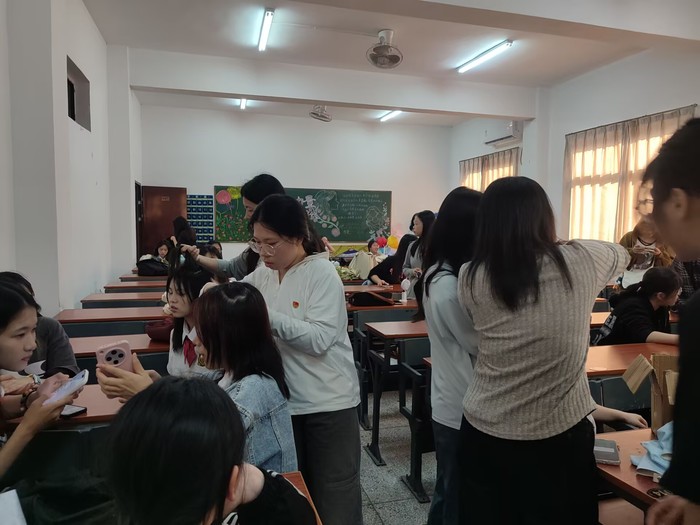 2025年04月29日,pg娱乐电子游戏官网入口物流管理系学生党支部为保障第二十四届五四合唱节决赛顺利开展,彰显pg娱乐电子游戏官网入口学子的精神面貌,组织支部10名同志于当日午后在祥贤楼107教室开展五四风采绽,美妆绘韶华主题形象提升活动。通过化妆服务为参赛团队塑造舞台形象,以青春容颜诠释五四精神内涵。