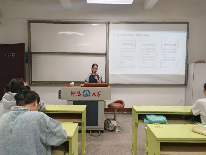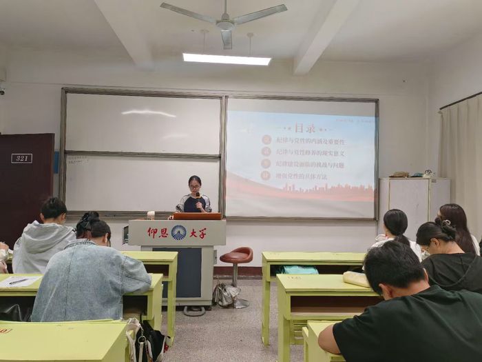 5月29日下午,市场营销系学生党支部于共和楼321召开主题为“筑牢纪律之基,增强党性修养”的党课活动。本次会议由黄佳惠同志主持,全体党员参加。