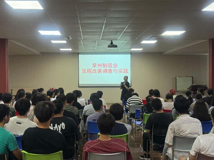 近日,在杨敏老师、张士杰老师、李崇伟老师的带领下,2022级工业工程专业的同学走进福建和诚鞋业有限公司开展《泉州制造业流程改善调查与实践》的课程实践活动,受到了公司领导及相关业务部门主管的热情接待,同学们深入了解了制鞋的生产流程和IE在制鞋业的应用,直观感受到了工业工程在制造业中发挥的作用和岗位工作内容,对学生的就业选择和职业发展提供了很好的借鉴。