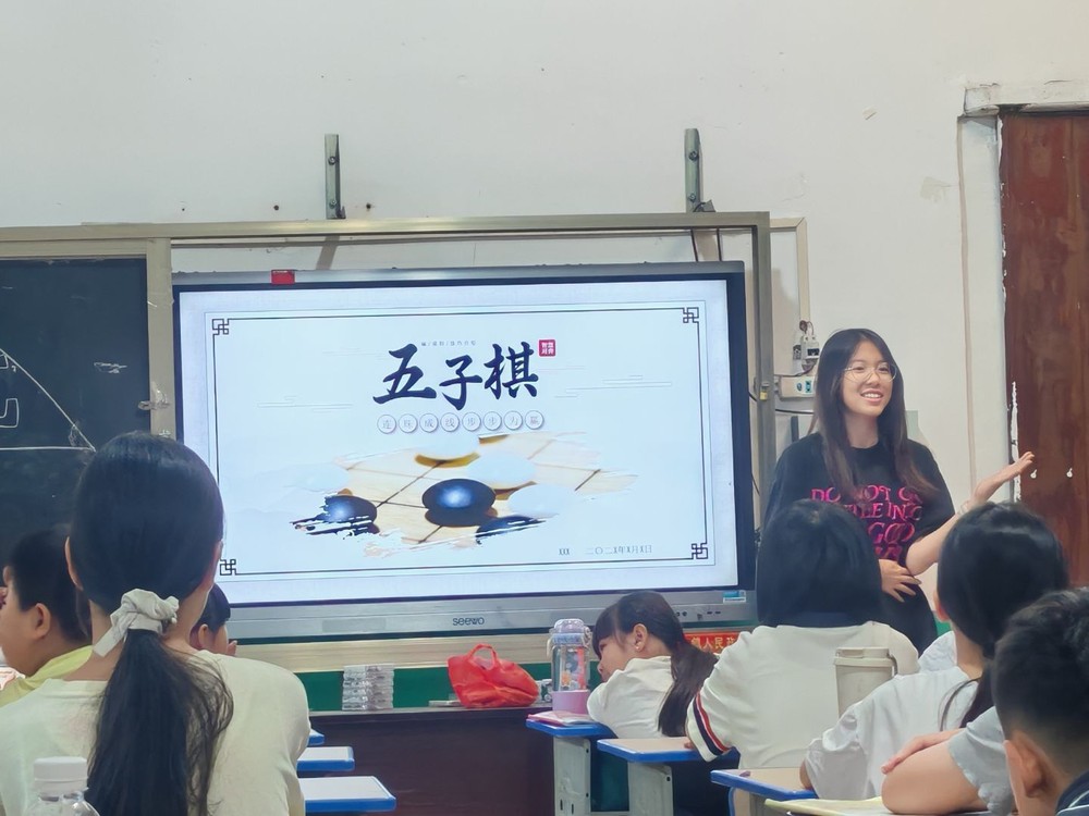 在棋类课堂上,实践队队员杨雯昕介绍围棋的来历与悠久历史,详细讲解五子棋规则和围棋规则,孩子们两两一组展开激烈对决。团队赛环节,孩子们依次上台对弈,现场气氛紧张又热烈。孩子们在棋盘上落下一颗颗棋子,体验着围棋的独特魅力。
